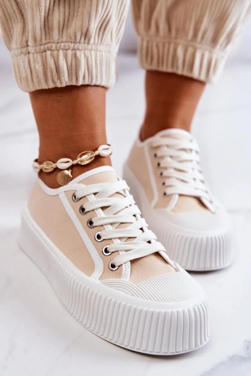Modne trampki na masywnej, gumowej platformie. Buty posiadają materiałową cholewkę oraz antypoślizgową podeszwę. Świetny model, który będzie pasował do wielu stylizacji! Nosek jest wzmacniany gumowym tworzywem. Trampki posiadają klasyczne wiązanie. Koniecznie sprawdź całą naszą kolekcję trampek! Przy wyborze rozmiaru prosimy sugerować się tabelą rozmiarów.