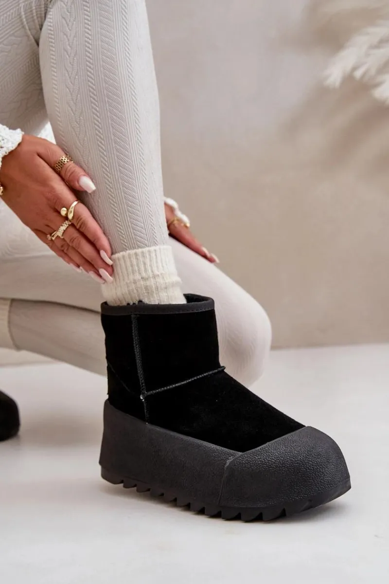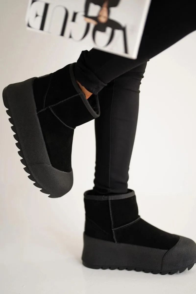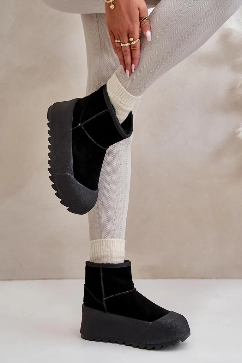 Śniegowce damskie, wykonane z naturalnego zamszu, zapewniają nie tylko elegancki wygląd, ale również doskonałą ochronę przed zimnem. Wyściółka z ciepłego futerka gwarantuje komfort i ciepło nawet w najchłodniejsze dni. Gumowa podeszwa stanowi dodatkowy atut, skutecznie chroniąc przed wilgocią. Dzięki temu śniegowce doskonale sprawdzą się zarówno podczas jesiennych opadów deszczu, jak i w trakcie śnieżnej zimy. Idealne połączenie funkcjonalności i stylu czyni je niezbędnym elementem garderoby na mroźne miesiące. Przy wyborze rozmiaru prosimy sugerować się tabelą rozmiarów.