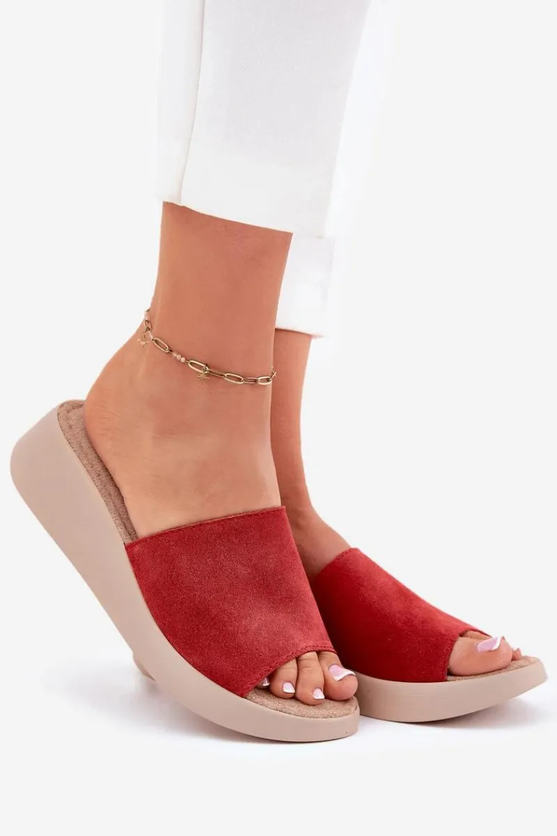 Damskie klapki wykonane z naturalnego zamszu to elegancka opcja na ciepłe dni. Osadzone na koturnie, zapewniają wygodę oraz stabilność przez cały dzień. Miękka wkładka dba o komfort stóp, czyniąc je idealnym wyborem do codziennych, letnich stylizacji. Te klapki łączą styl z funkcjonalnością, doskonale uzupełniając casualowe i bardziej eleganckie looki. Przy wyborze rozmiaru prosimy sugerować się tabelą rozmiarów.