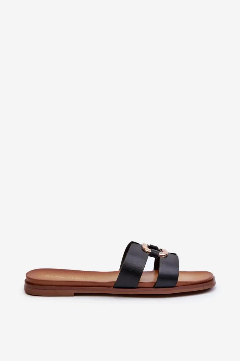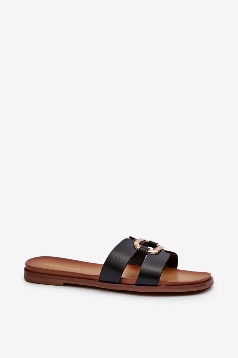 Eleganckie płaskie klapki damskie z eko skóry to idealne połączenie stylu i komfortu. Przód ozdobione złotym detalem, który dodaje subtelnej elegancji każdej stylizacji. Idealne na letnie dni pełne aktywności, gwarantują wygodę i swobodę ruchu. Modne i komfortowe w użytkowaniu — po prostu musisz je mieć. Przy wyborze rozmiaru prosimy sugerować się tabelą rozmiarów.