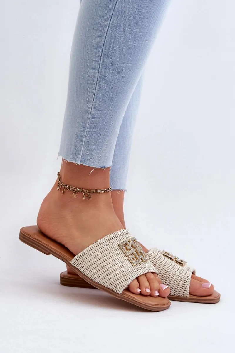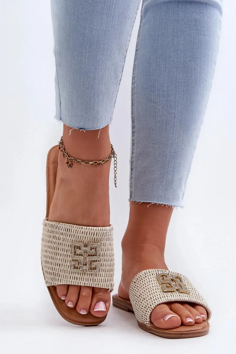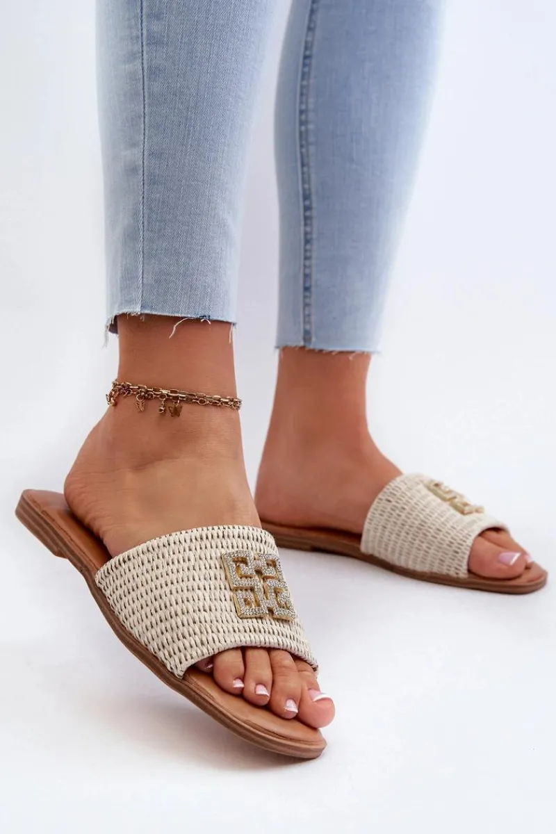 Damskie płaskie klapki z plecionką. Ozdoba z przodu nie tylko nadaje elegancji, ale także sprawia, że są doskonałym wyborem na wiele okazji, od relaksujących spacerów po plaży po letnie spotkania ze znajomymi. Przy wyborze rozmiaru prosimy sugerować się tabelą rozmiarów.