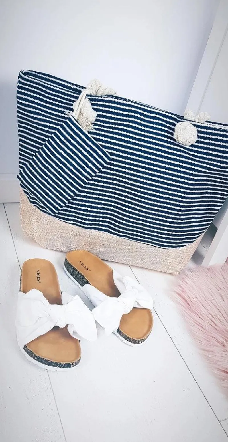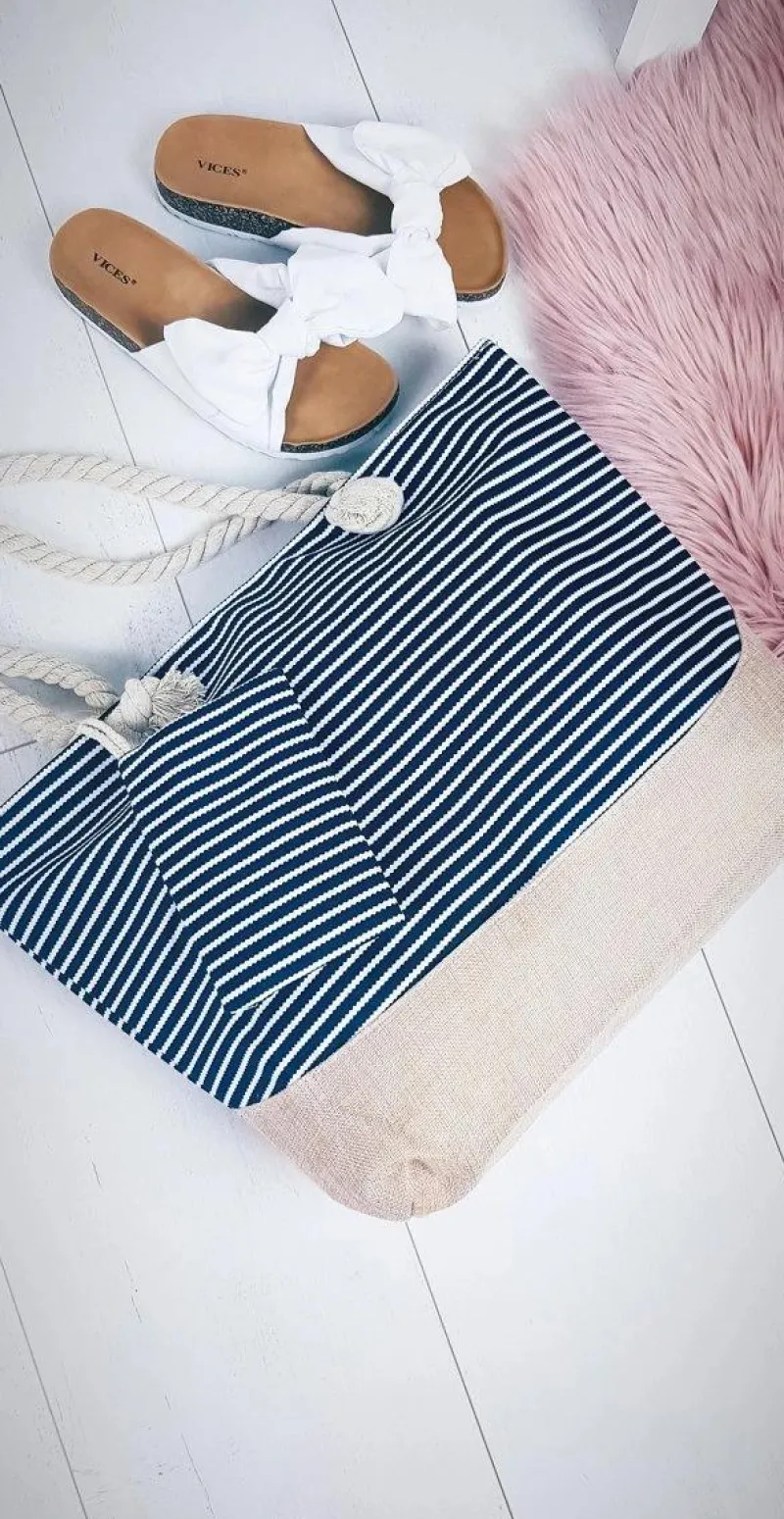 Online Plażowa Duża Granatowa Torebka Torba Damska Paski Torebki Plażowe