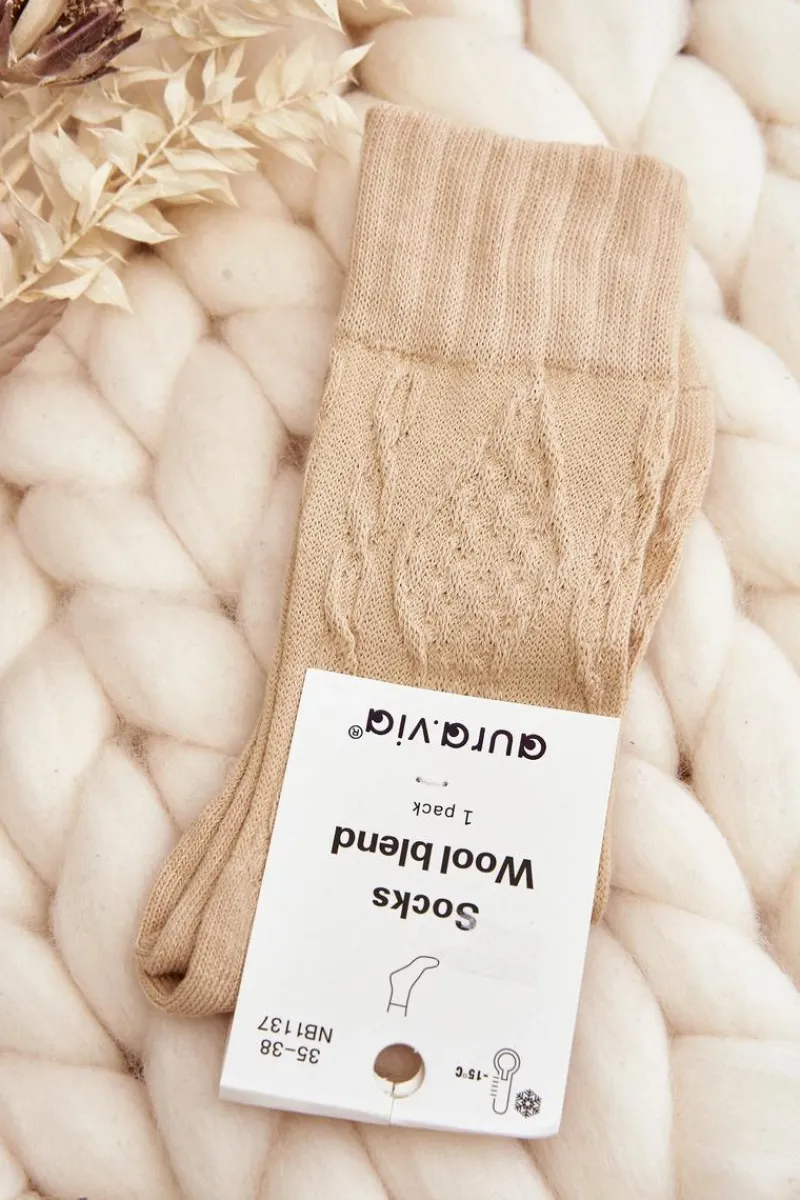 Online Skarpety Damskie Z Tłoczeniem Beżowe Skarpetki|Skarpetki