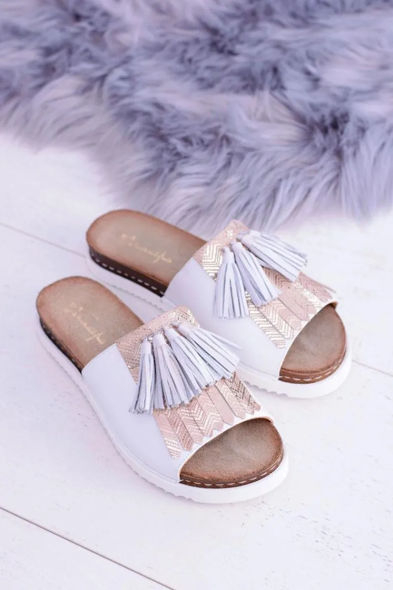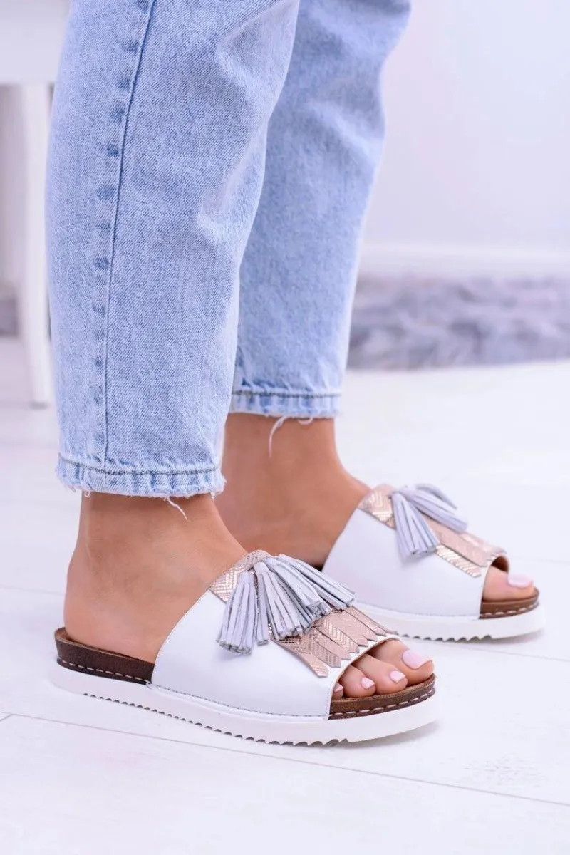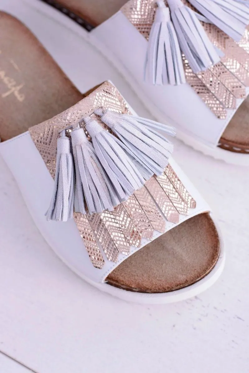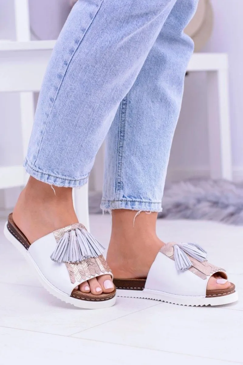 Wspaniała kolekcja damskich skórzanych klapków renomowanej firmy Maciejka. Wykonane ręcznie z dbałością o każdy detal. Nasz komfort wzbogaci skórzana, wyprofilowana wkładka. Delikatna podeszwa na podwyższeniu z pewnością sprawdzą się w tym sezonie. Świetnie nadają się w każdej codziennej stylizacji dzięki frędzlom na czubku.