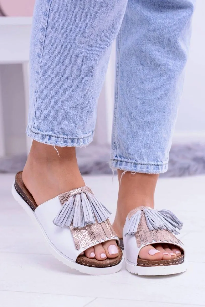 Online Skórzane Białe Eleganckie Klapki Resto Damskie Klapki Damskie Klasyczne