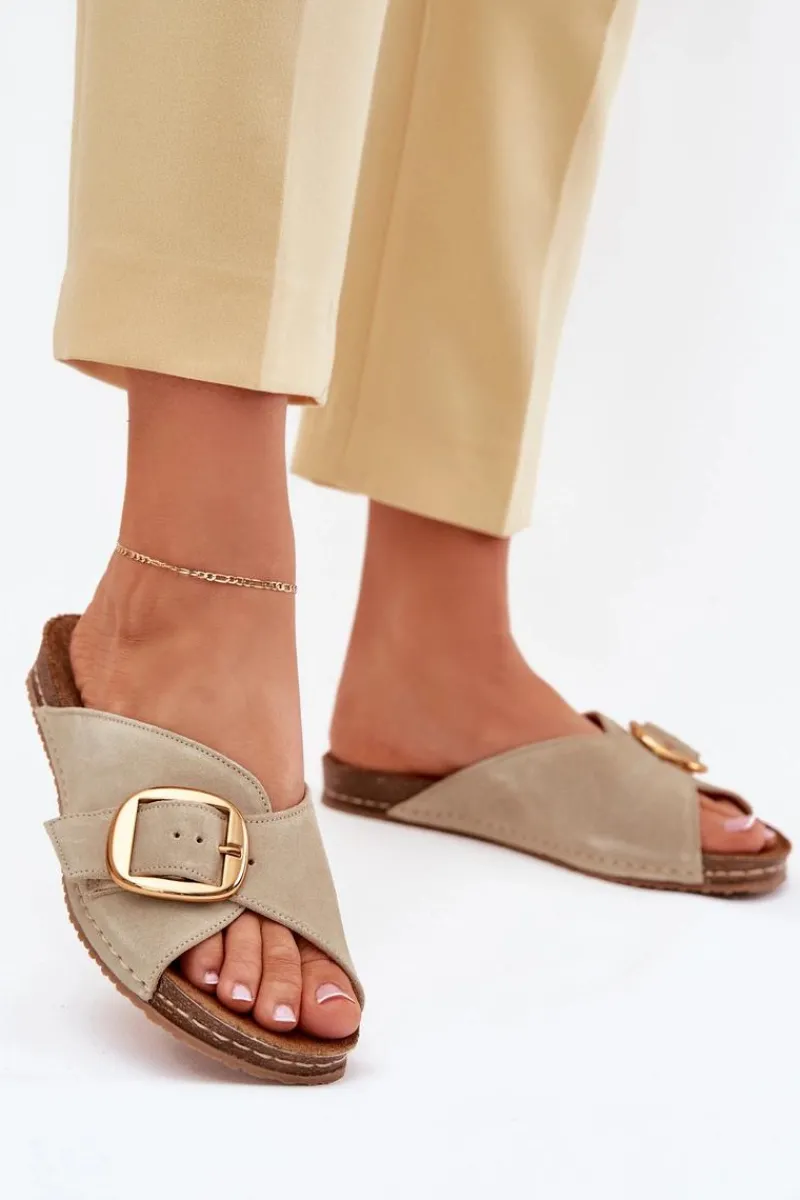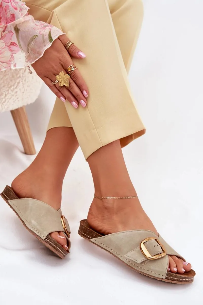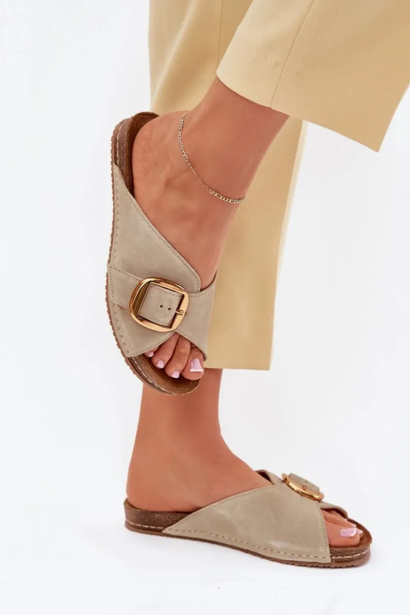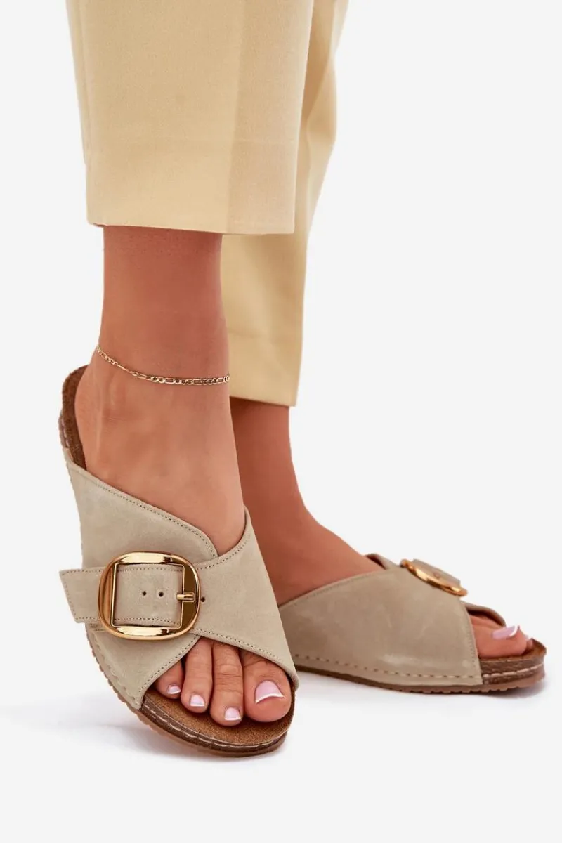 Klapki damskie marki Maciejka, wykonane z naturalnej skóry, osadzone na platformie, łączą elegancję z komfortem. Złota klamra z regulowanym paskiem stanowi stylowy akcent, a delikatnie profilowana wkładka zapewnia wygodę na każdym kroku. Idealne do letnich stylizacji, doskonale komponują się z sukienkami, spódnicami czy szortami. Przy wyborze rozmiaru prosimy sugerować się tabelą rozmiarów.
