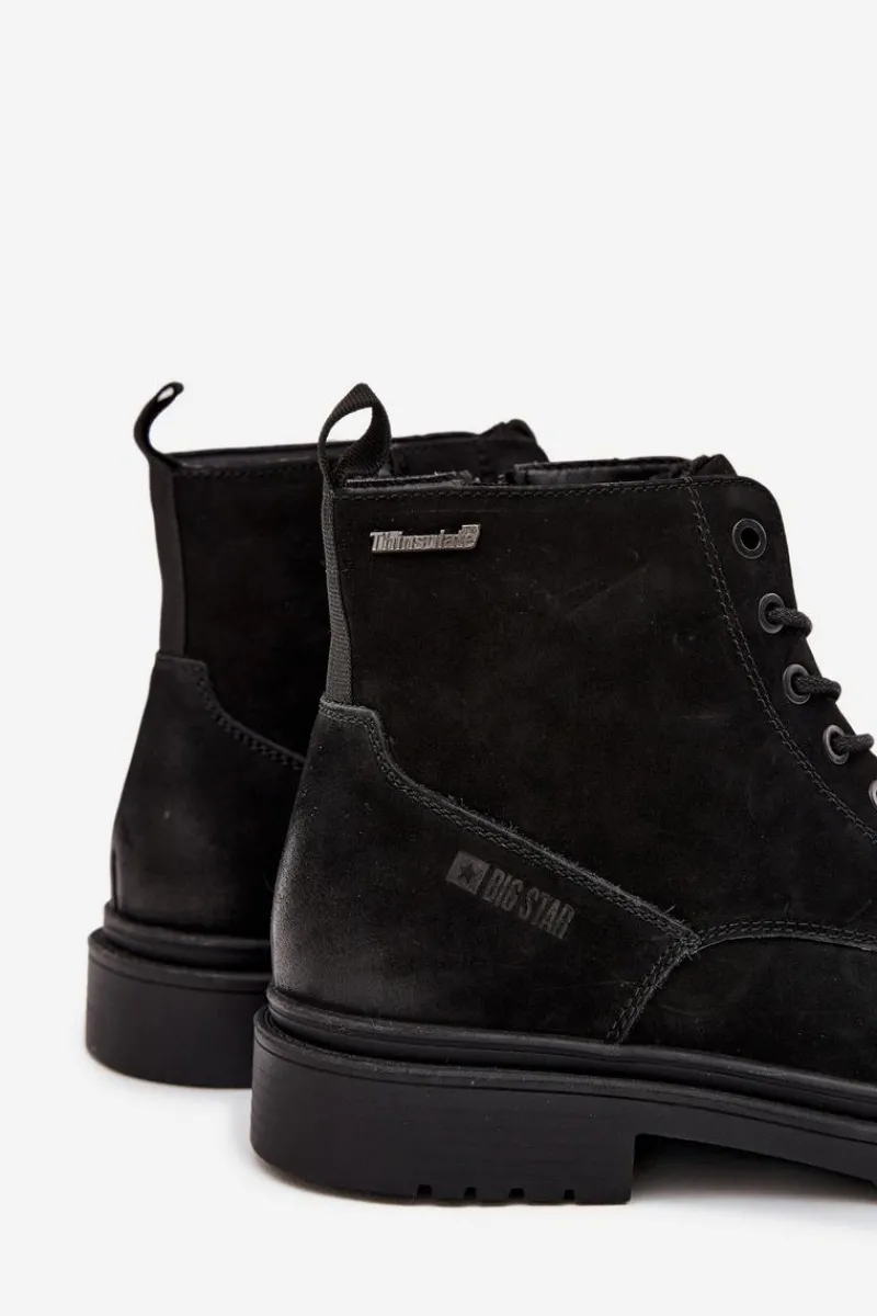 Męskie botki od marki Big Star, wykonane z naturalnego zamszu, to świetna opcja na chłodniejsze. Ocieplone miękkim futerkiem, zapewniają ciepło i komfort. Model zapinany na zamek oraz sznurowany, umożliwia łatwe dopasowanie do stopy. To eleganckie i funkcjonalne obuwie, które idealnie komponuje się w codziennych stylizacjach, zapewniając wygodę i modny wygląd przez cały dzień. Przy wyborze rozmiaru prosimy sugerować się tabelą rozmiarów.