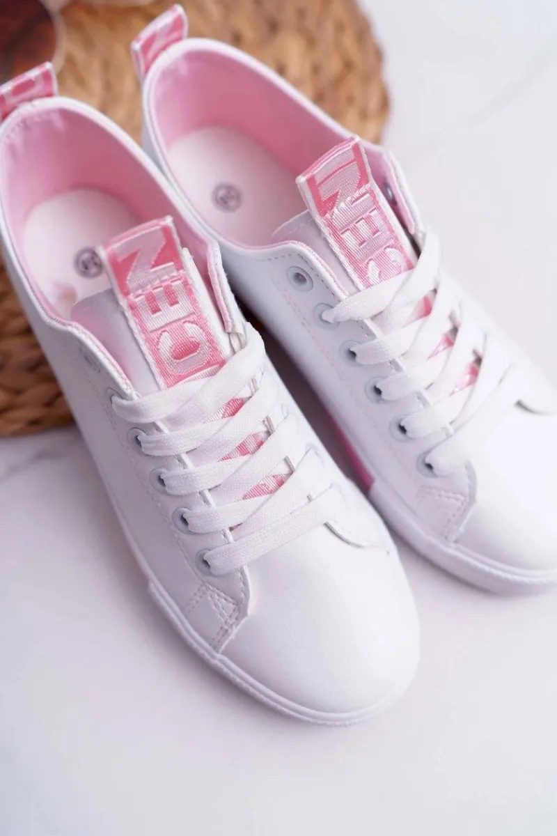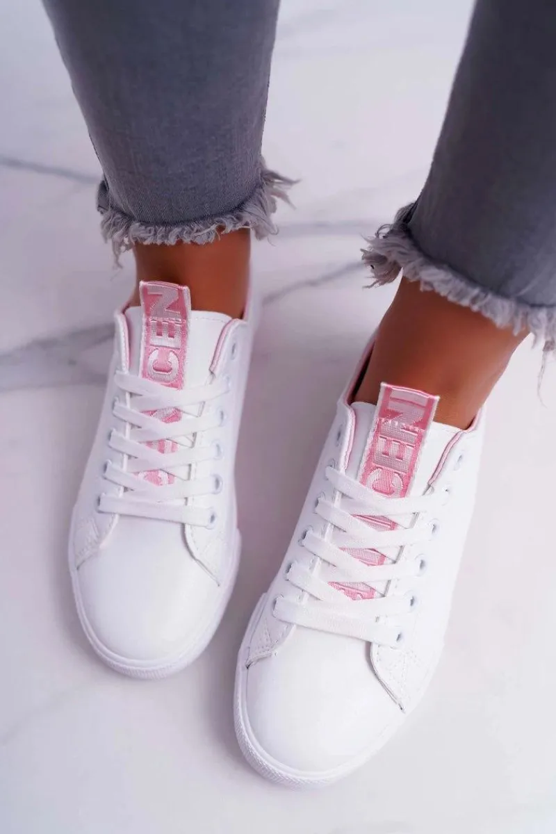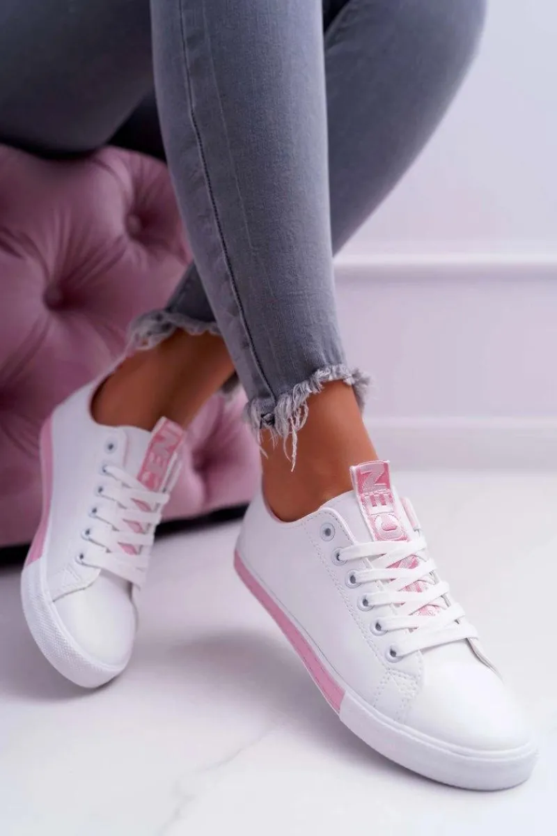 Online Trampki Damskie Białe Różowy Pasek Nigrid Damskie Trampki Damskie Niskie