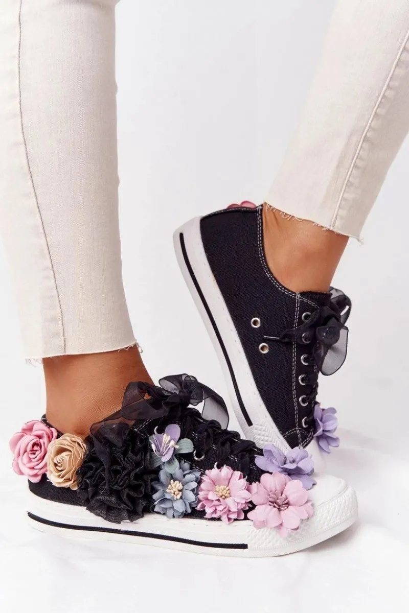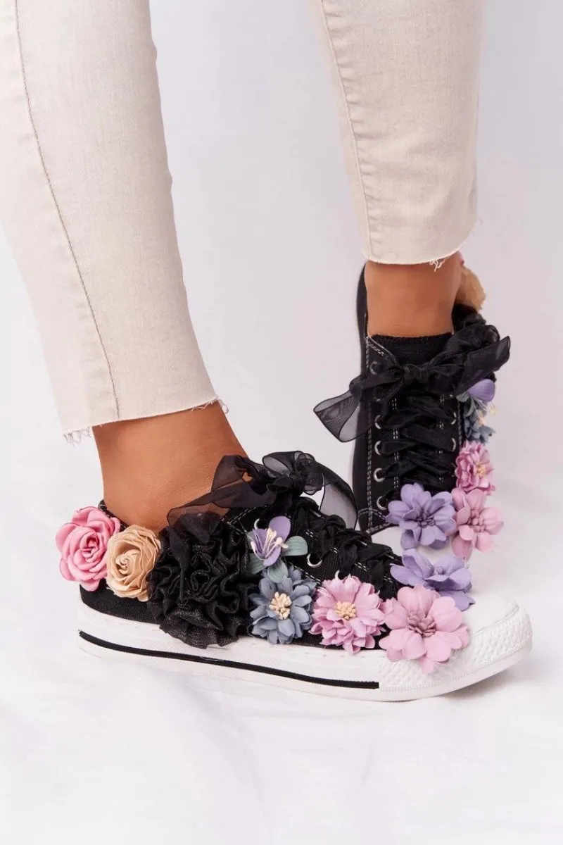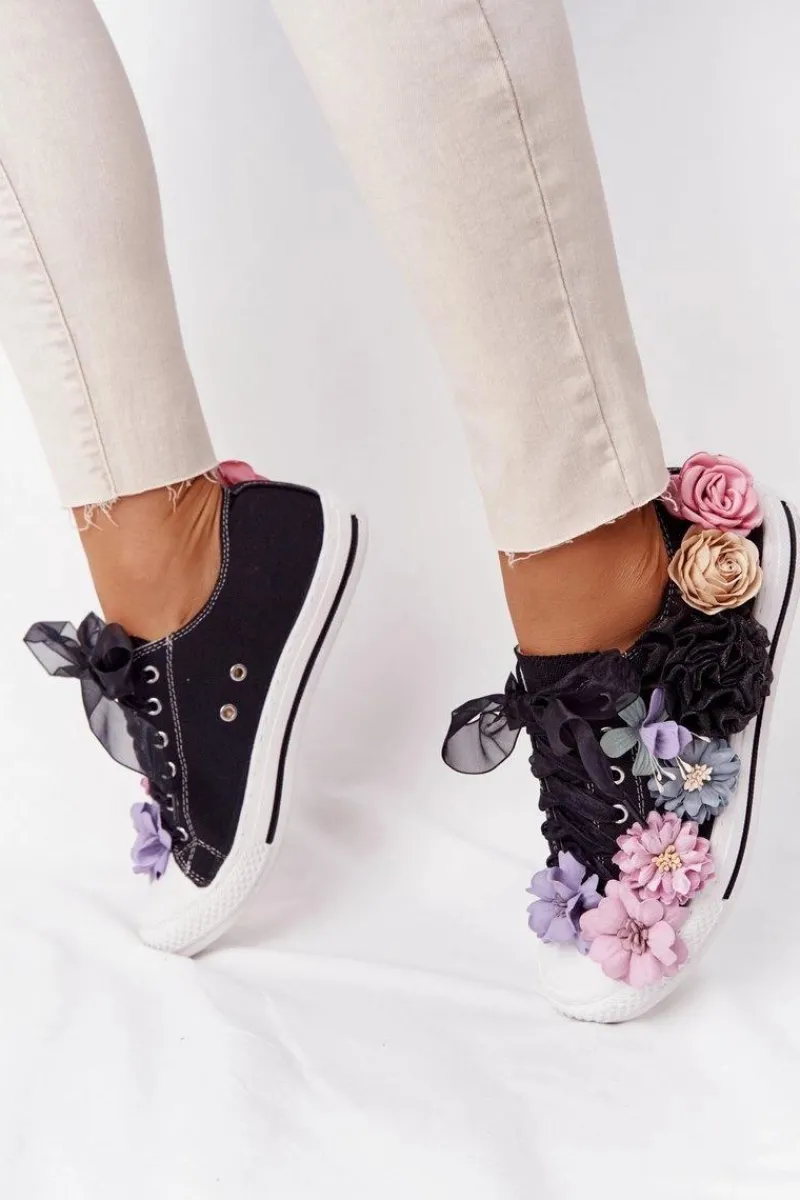 Online Trampki Z Kwiatam Lu Boo Czarne Damskie Trampki Damskie Niskie