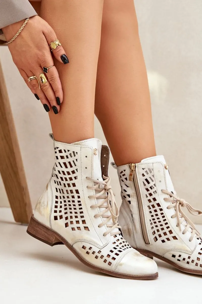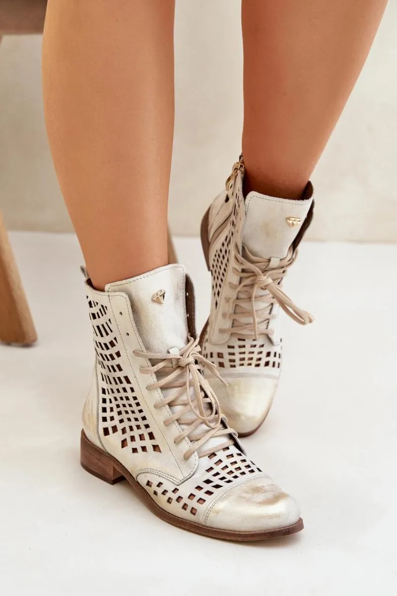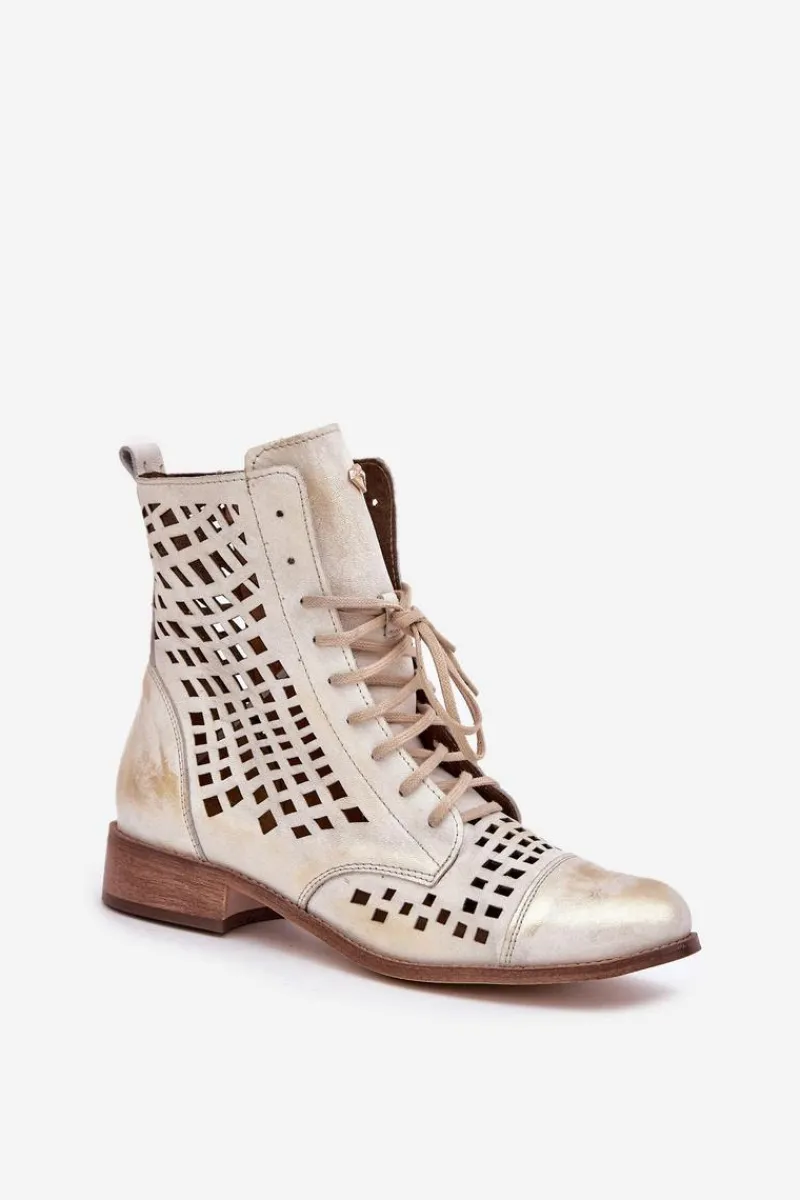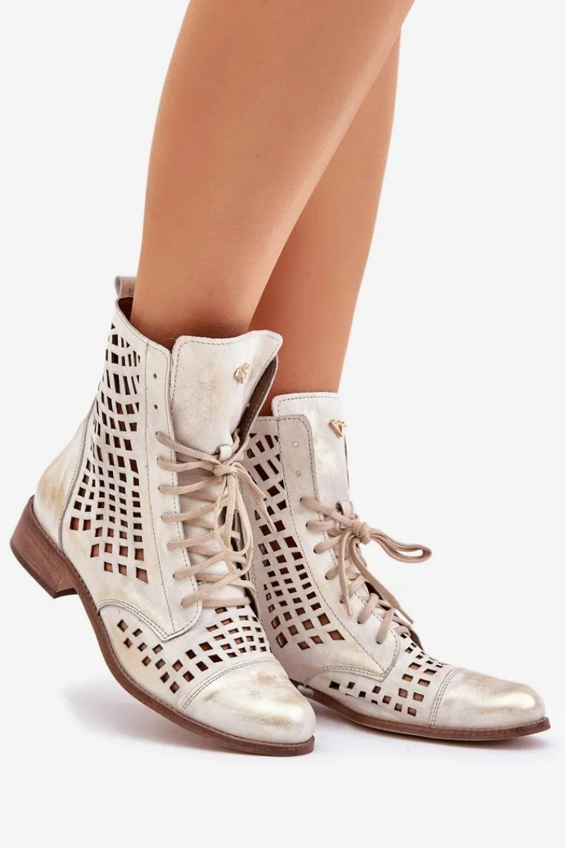 Online Zazoo 2627 Ażurowe Skórzane Botki Złoty Przecierany