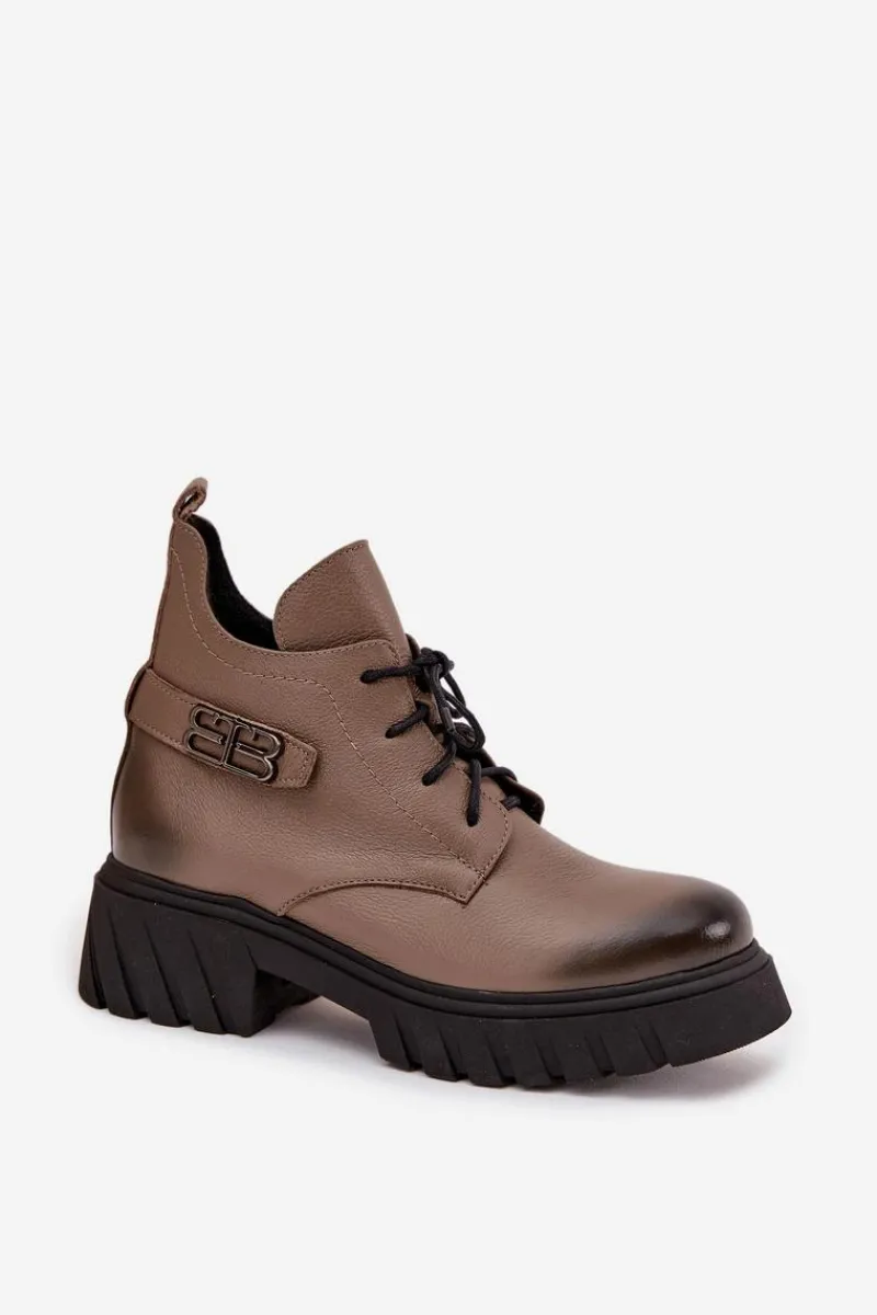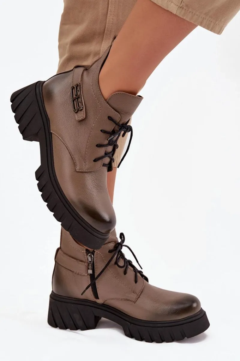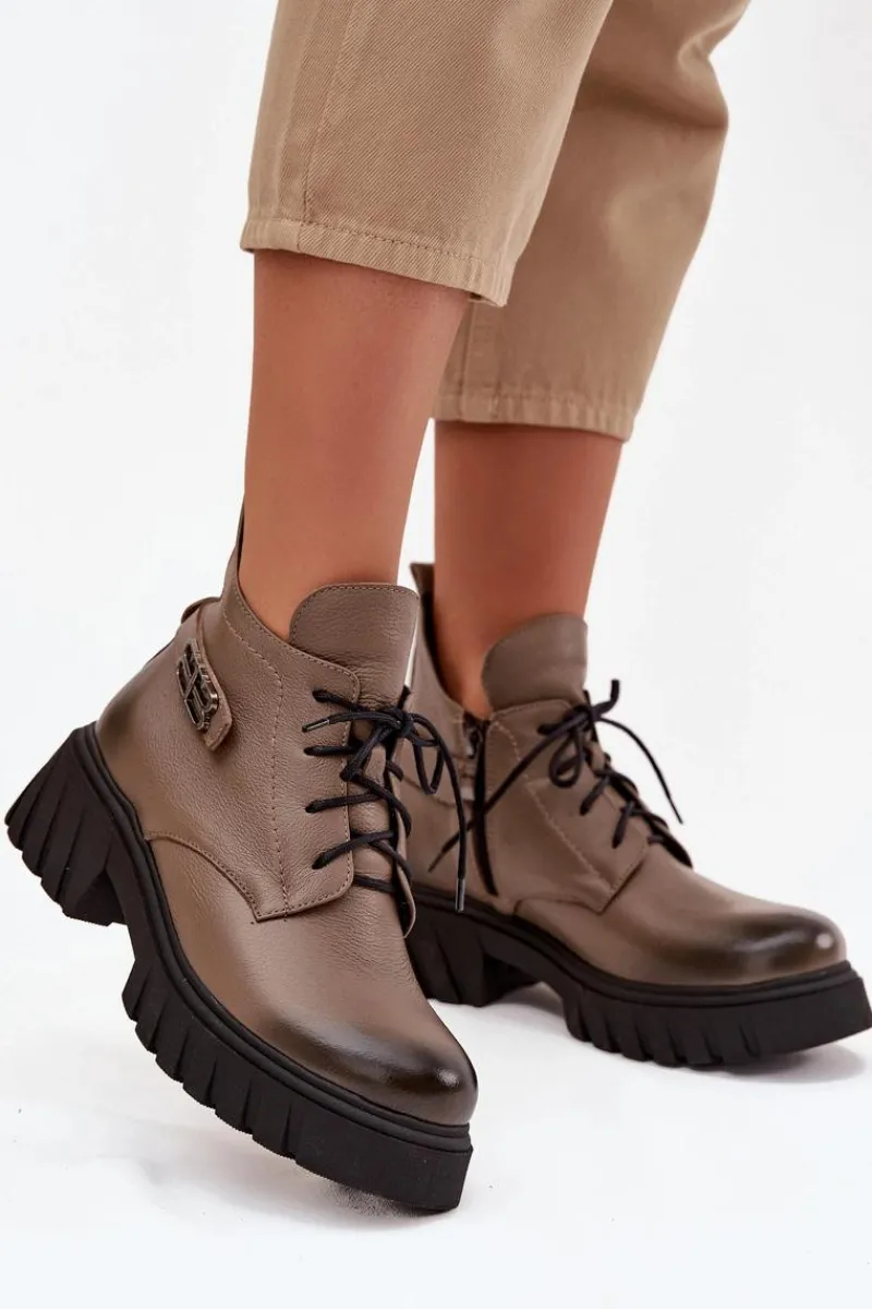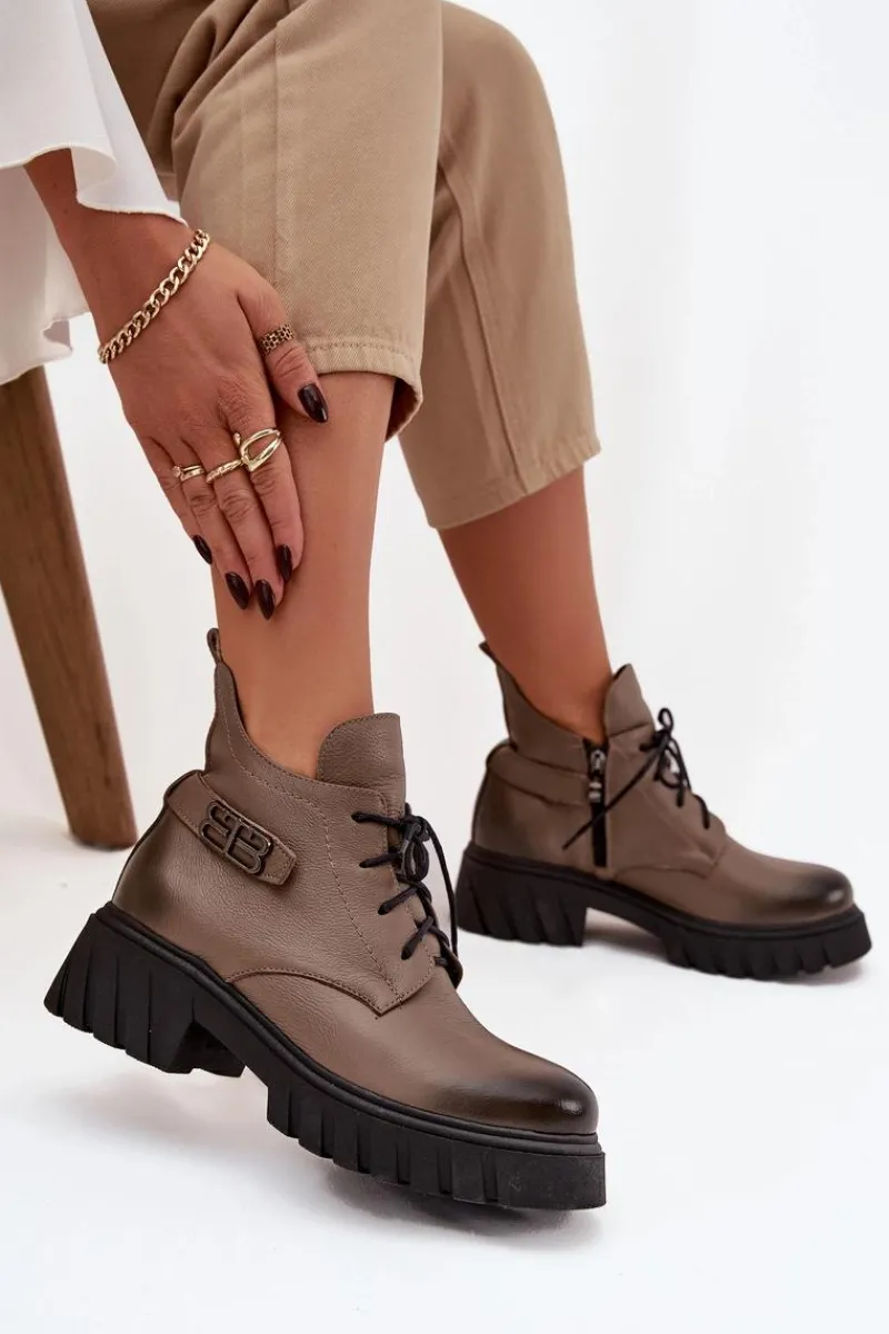 Damskie botki wykonane ze skóry naturalnej. Zapinane na zamek oraz dodatkowo posiadają sznurowanie. Noski zaokrąglone. Wnętrze zostało ocieplone miękkim filcem, który zapewnia ciepło nawet w najchłodniejsze dni. Filc nie tylko chroni przed zimnem, ale także zwiększa komfort noszenia, dzięki swojej miękkości i właściwościom izolacyjnym. To sprawia, że botki są idealnym wyborem na jesienne i zimowe miesiące, gwarantując nie tylko stylowy wygląd, ale także komfort i ochronę przed chłodem. Te botki to doskonałe połączenie klasycznego stylu i nowoczesnych rozwiązań, które sprawdzą się w różnorodnych stylizacjach, od casualowych po bardziej eleganckie. Przy wyborze rozmiaru prosimy sugerować się tabelą rozmiarów.