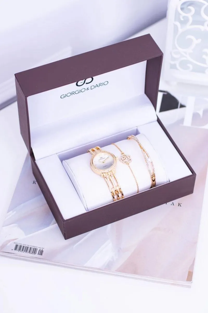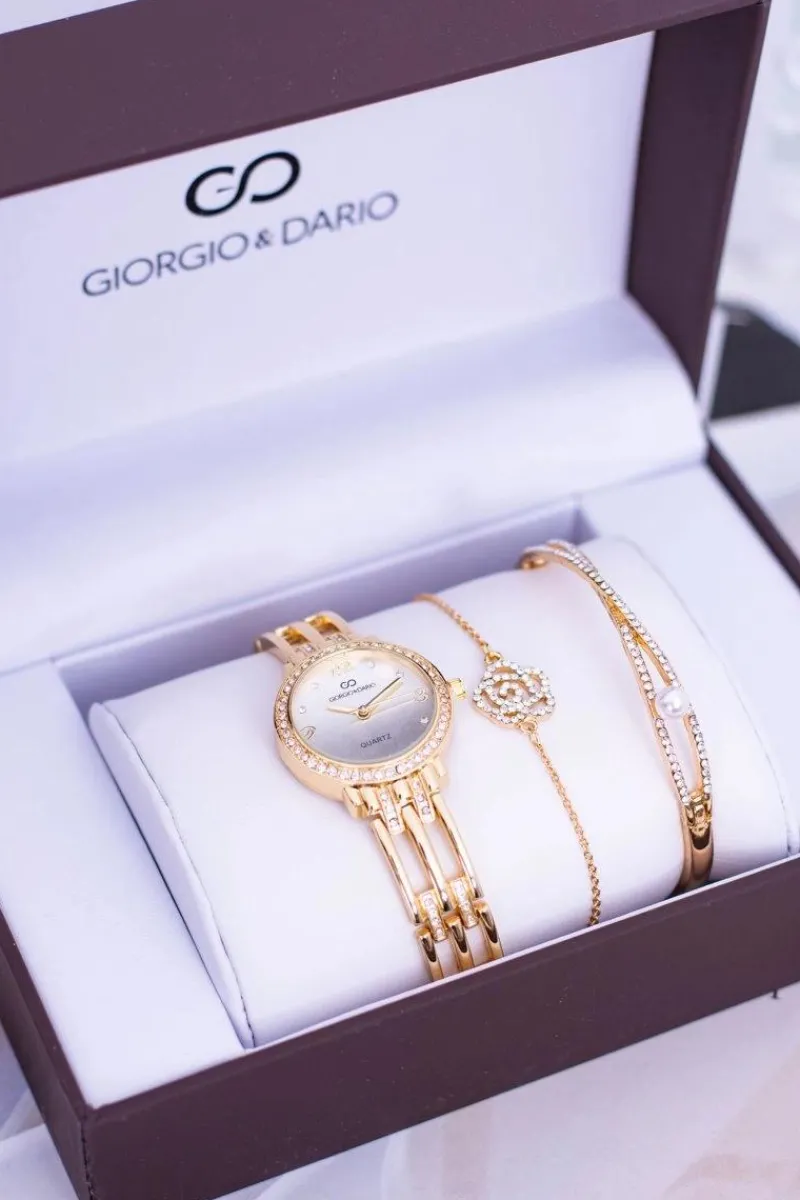 Online Zestaw Giorgio Dario Złoty Damski Zegarek Z Cyrkoniami Dwie Bransolety Zegarki