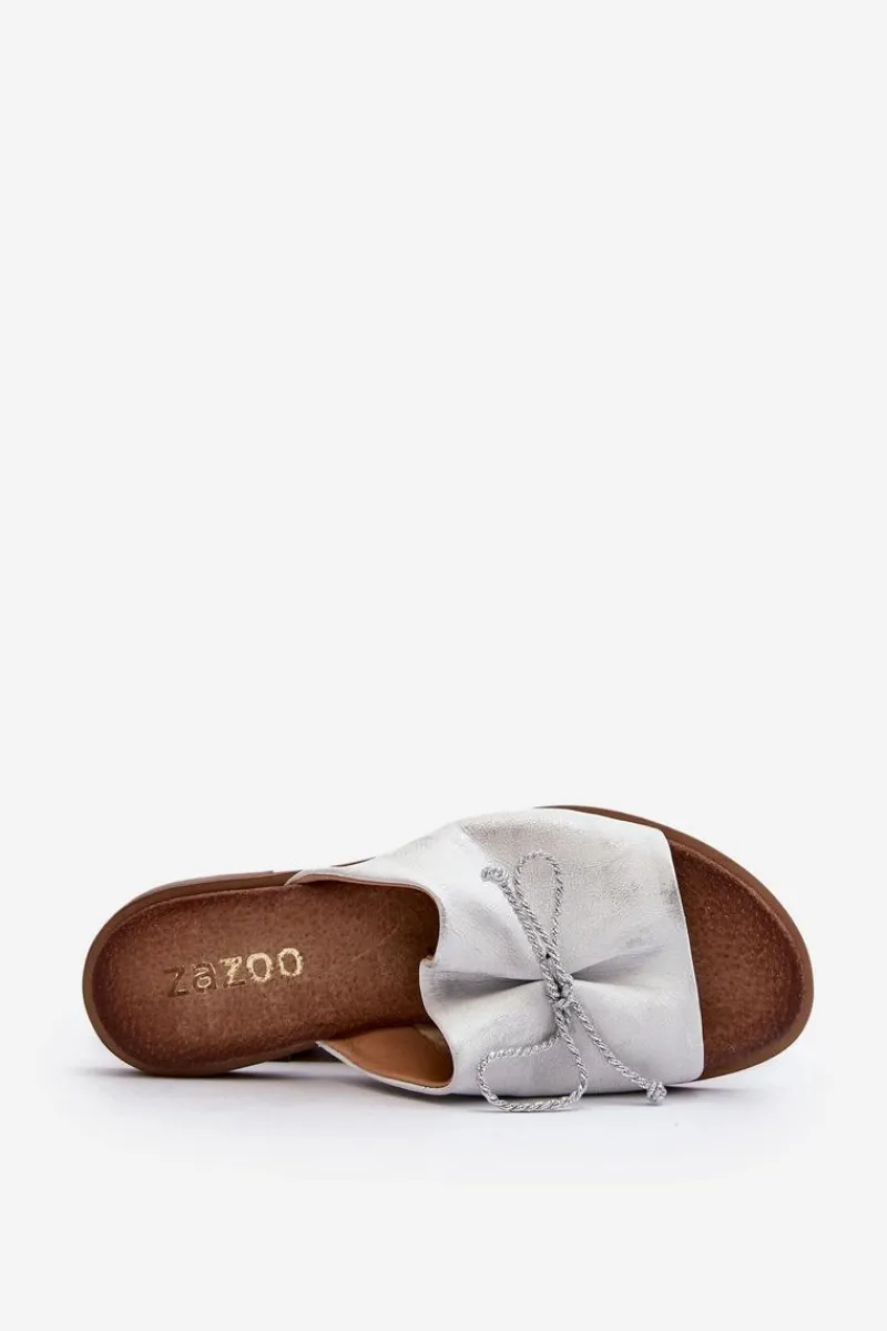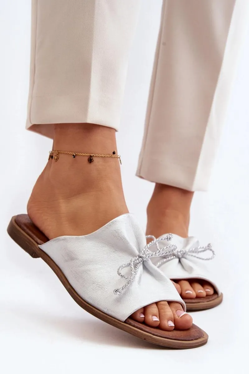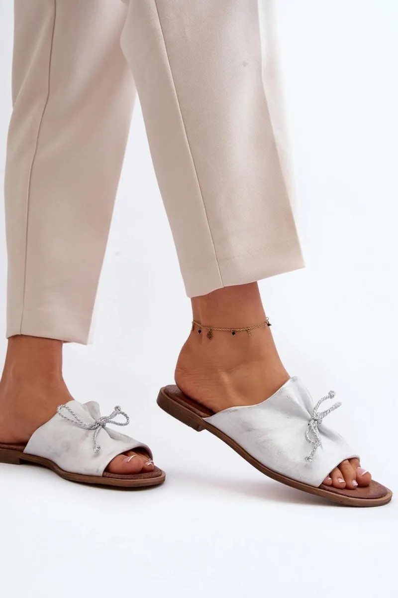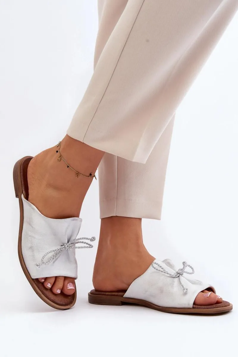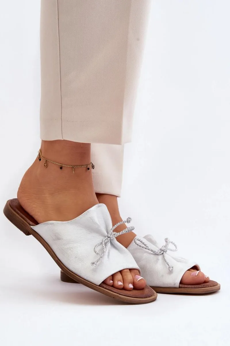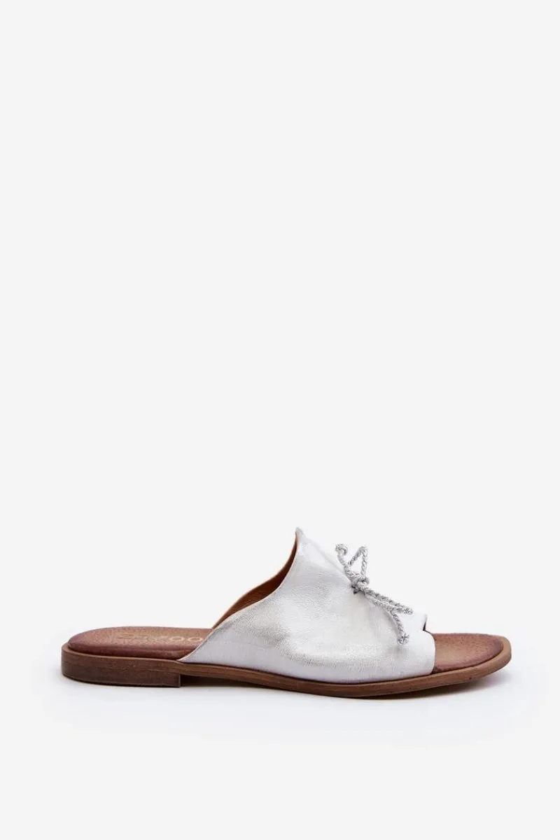 Wygodne klapki ozdobione modnym, plecionym sznureczkiem. Delikatne marszczenie dodaje tym klapkom subtelnego wyglądu. Buty wykonane są w całości ze skóry. Posiadają sztywną, wykonaną z tworzywa sztucznego podeszwę. Miękka wkładka zapewni komfort nawet w upalne dni! Koniecznie sprawdź całą naszą kolekcję damskich klapek! Przy wyborze rozmiaru prosimy sugerować się tabelą rozmiarów.