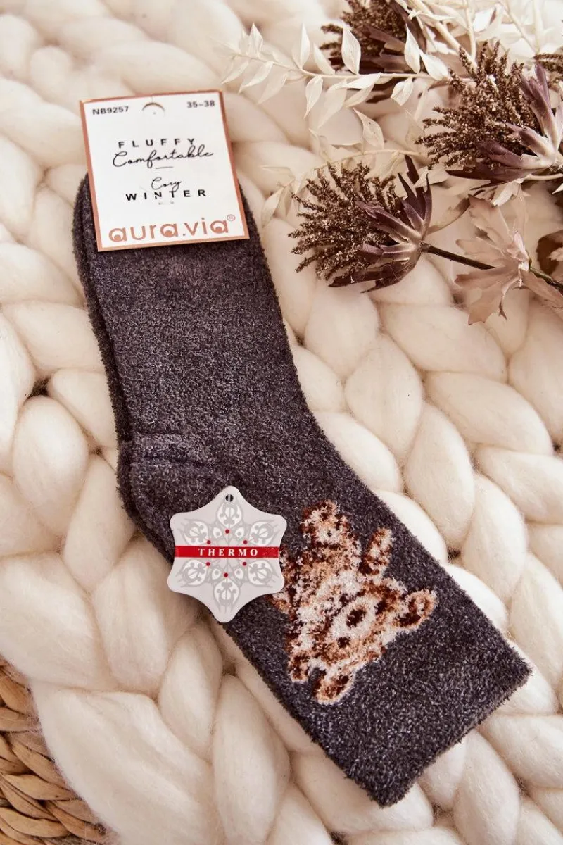 Outlet Aura.via Damskie Miękkie Ciepłe Skarpetki Z Misiem Grafitowe