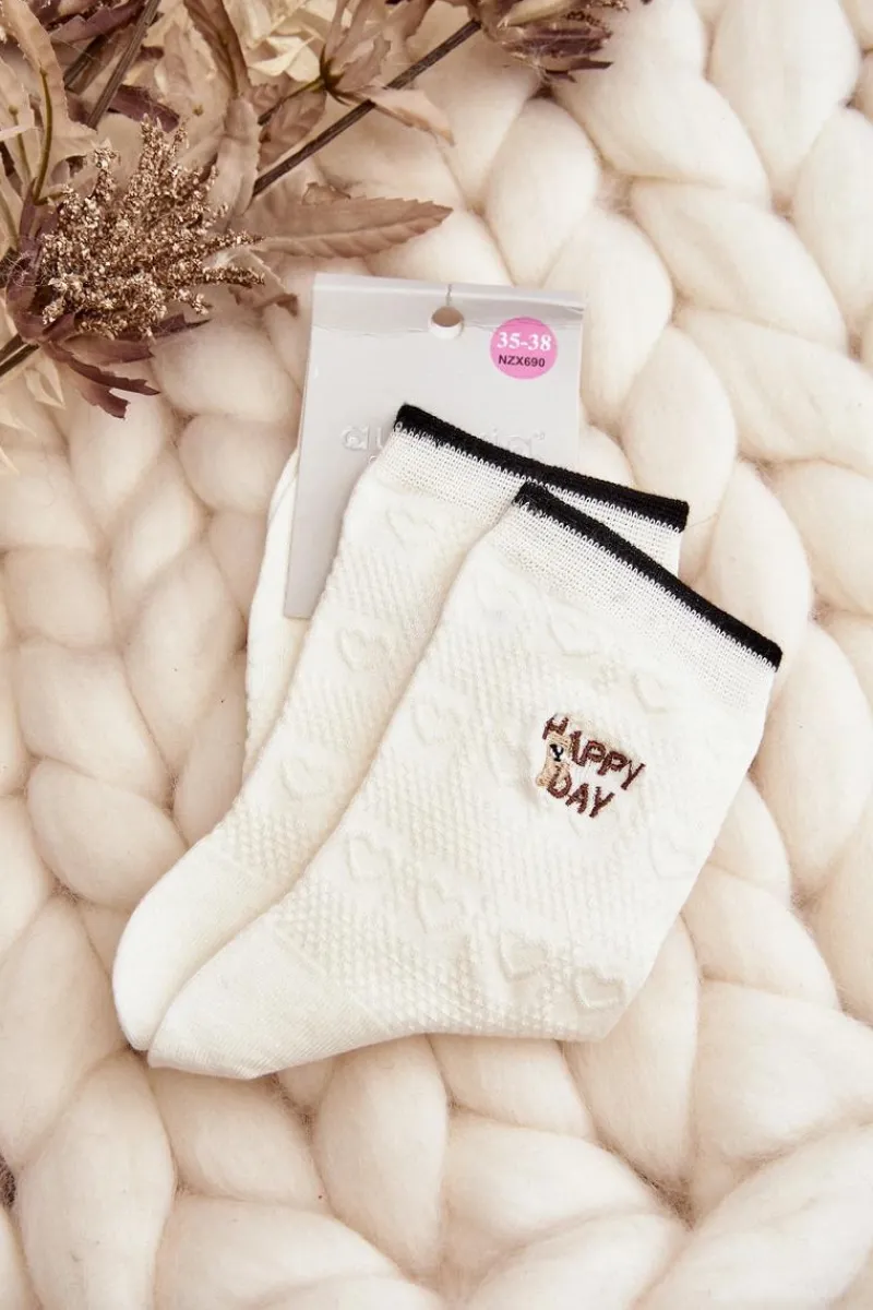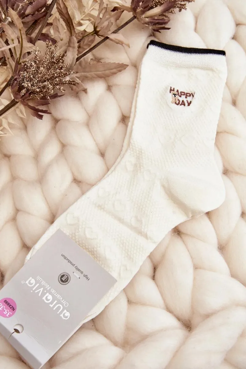 Outlet Aura.via Damskie Skarpety Wzorzyste Z Napisem I Misiem Białe
