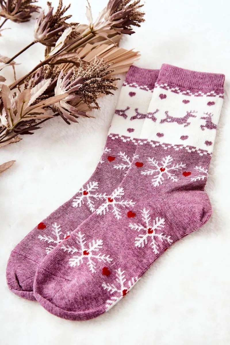 Outlet Aura.via Skarpetki W Świąteczny Wzór Różowo-Białe