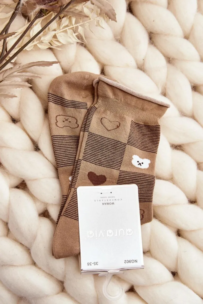 Outlet Aura.via Skarpety Damskie We Wzory Brązowe
