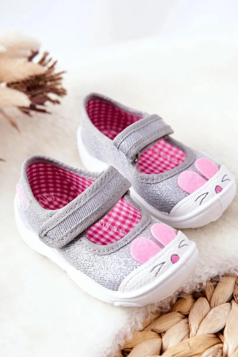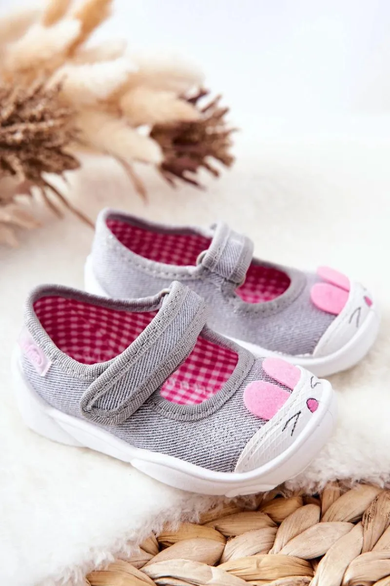 Dziewczęce papcie chronią stopy dziecka przed powstaniem płaskostopia, dając im swobodę i komfort podczas wielu godzin spędzonych w żłobku czy na zabawach na dworze. Obuwie posiada zapięcie na rzep, które podtrzymuje stopę. Buciki są lekkie i wykonane z bawełnianych tkanin, co znacznie przyczynia się do ograniczenia potliwości stópek. Podwyższony zapiętek pozwala na stabilizację stopy dziecka, co jest ważne przy każdej aktywności malucha. Model ten posiada szeroki czubek, co zapewnia przestrzeń dla małych paluszków, dzięki czemu dziecko czuje się komfortowo.Przy wyborze rozmiaru prosimy kierować tabelą rozmiarów.