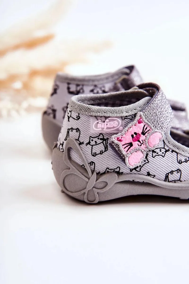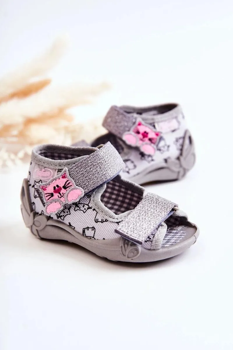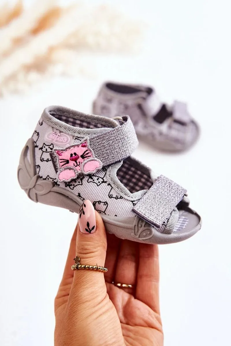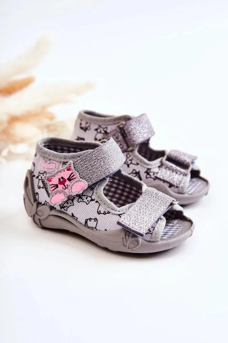 Outlet BEFADO Sandałki Papcie Na Rzep Kotki 242P102 Szare