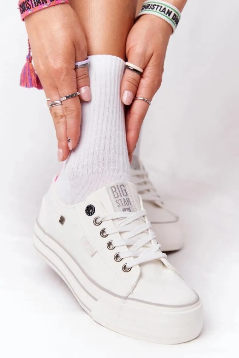 Damskie tenisówki na platformie polskiej marki BIG STAR. Kultowe już trampki pasują do wielu stylizacji. Buty dobrze dopasowują się do kształtu stopy, posiadają miękką, materiałową wkładkę oraz antypoślizgową podeszwę. Koniecznie sprawdź całą naszą kolekcję butów BIG STAR. Przy wyborze rozmiaru prosimy sugerować się tabelą rozmiarów.