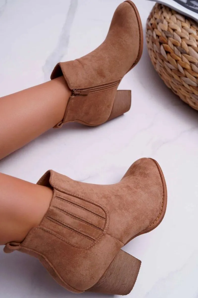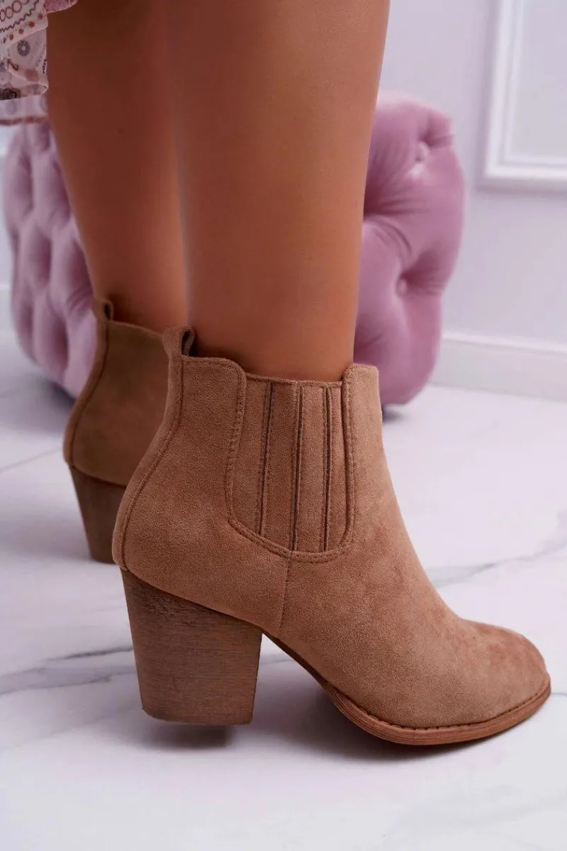 Outlet Botki Damskie Na Obcasie Zamszowe Beżowe Gomen Damskie Botki Na Słupku|Botki Zimowe Damskie