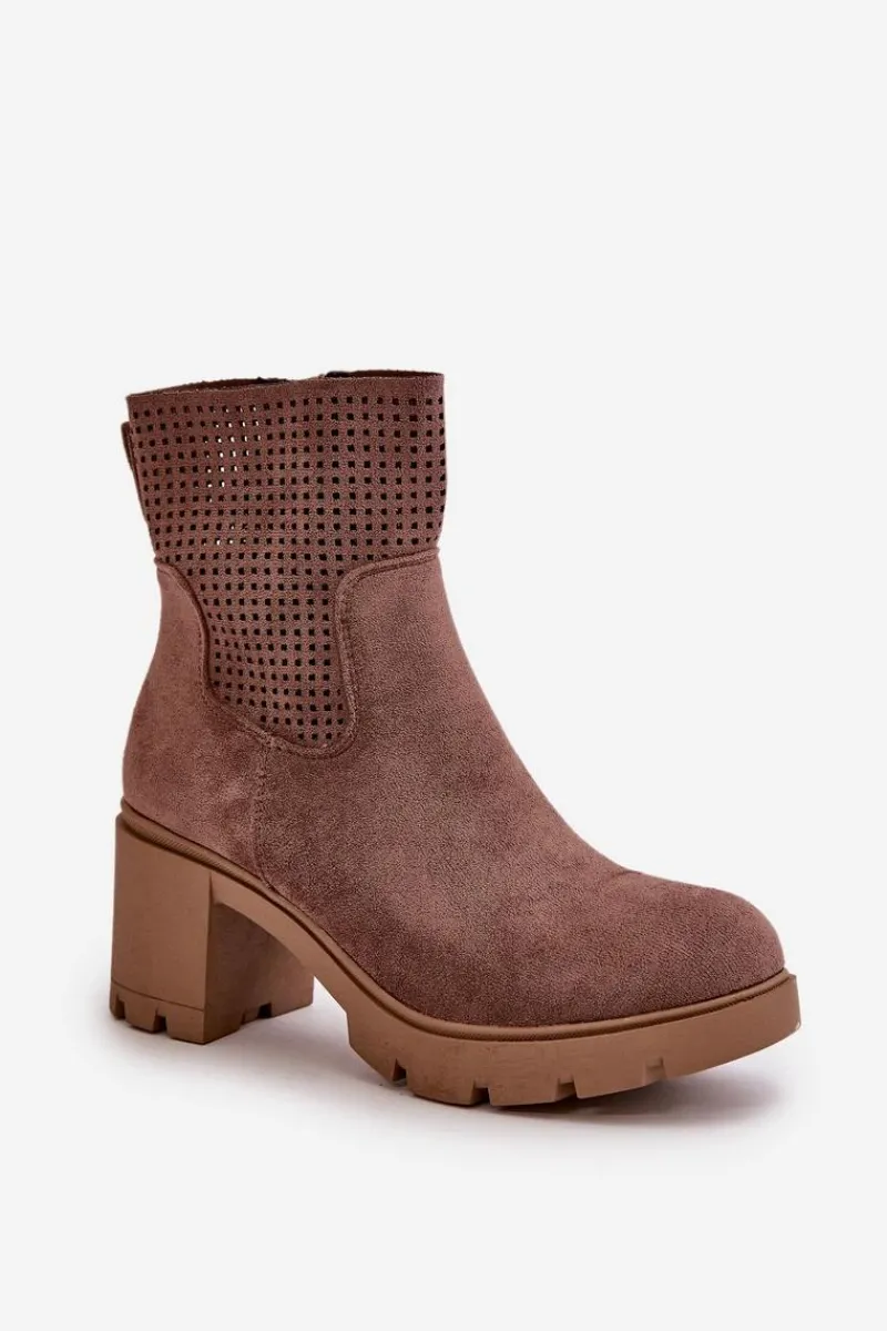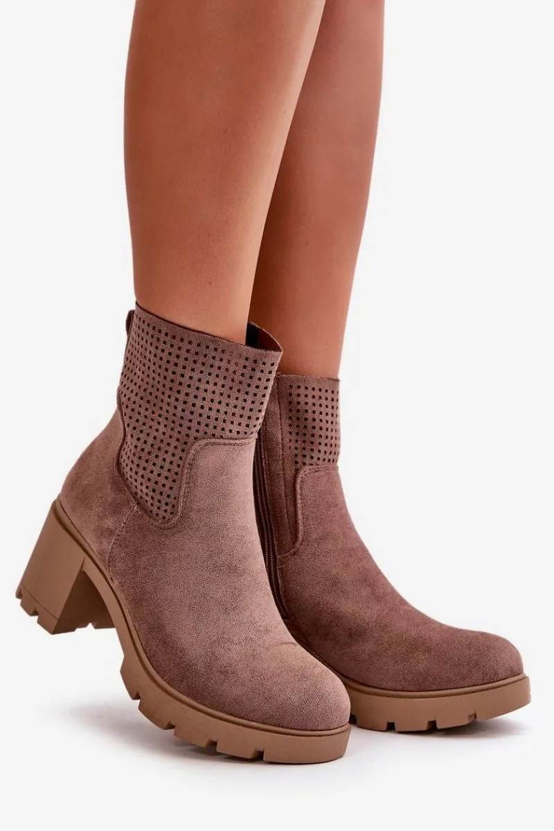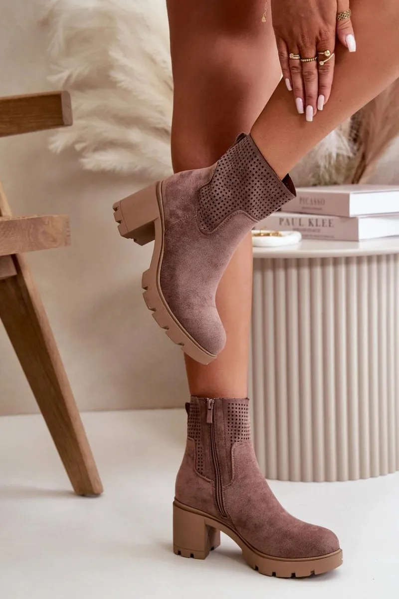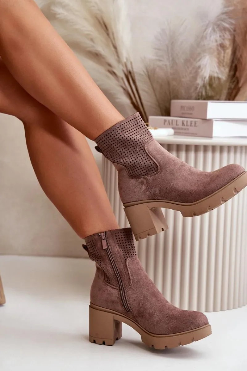 Botki marki Jezzi, wykonane z wysokiej jakości eko zamszu, łączą w sobie styl i funkcjonalność. Stabilny obcas w formie słupka zapewnia wygodę i pewność kroku przez cały dzień. Boczne zapięcie na zamek ułatwia szybkie zakładanie i zdejmowanie butów, co jest praktyczne w codziennym użytkowaniu. Te botki to doskonały wybór dla kobiet, które cenią modny wygląd bez rezygnacji z komfortu. Przy wyborze rozmiaru prosimy sugerować się tabelą rozmiarów.