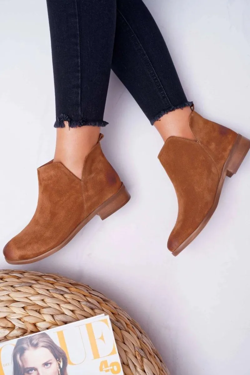 Outlet Botki Damskie Płaski Obcas Wiosenne Skórzane Brązowe Madness Damskie Botki Wiosenne|Brązowe I Beżowe Botki