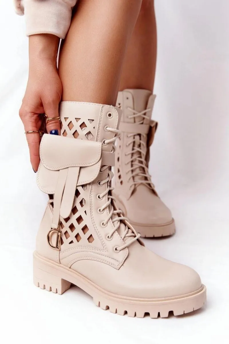 Ażurowe botki z odpinaną nerką. Workery w całości wykonane są z eko skóry. Botki świetnie wpiszą się w stylizacje glam rock lub grunge. Koniecznie sprawdź całą naszą kolekcję damskich botków! Przy wyborze rozmiaru prosimy sugerować się tabelą rozmiarów.
