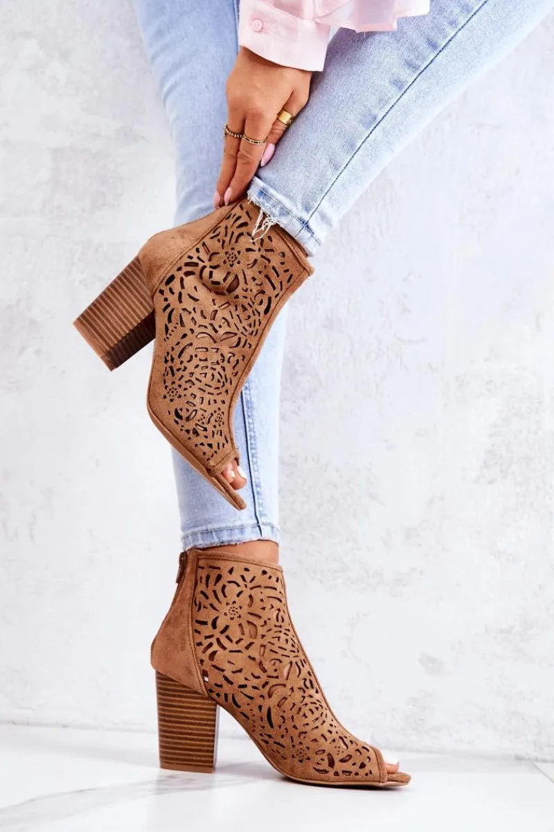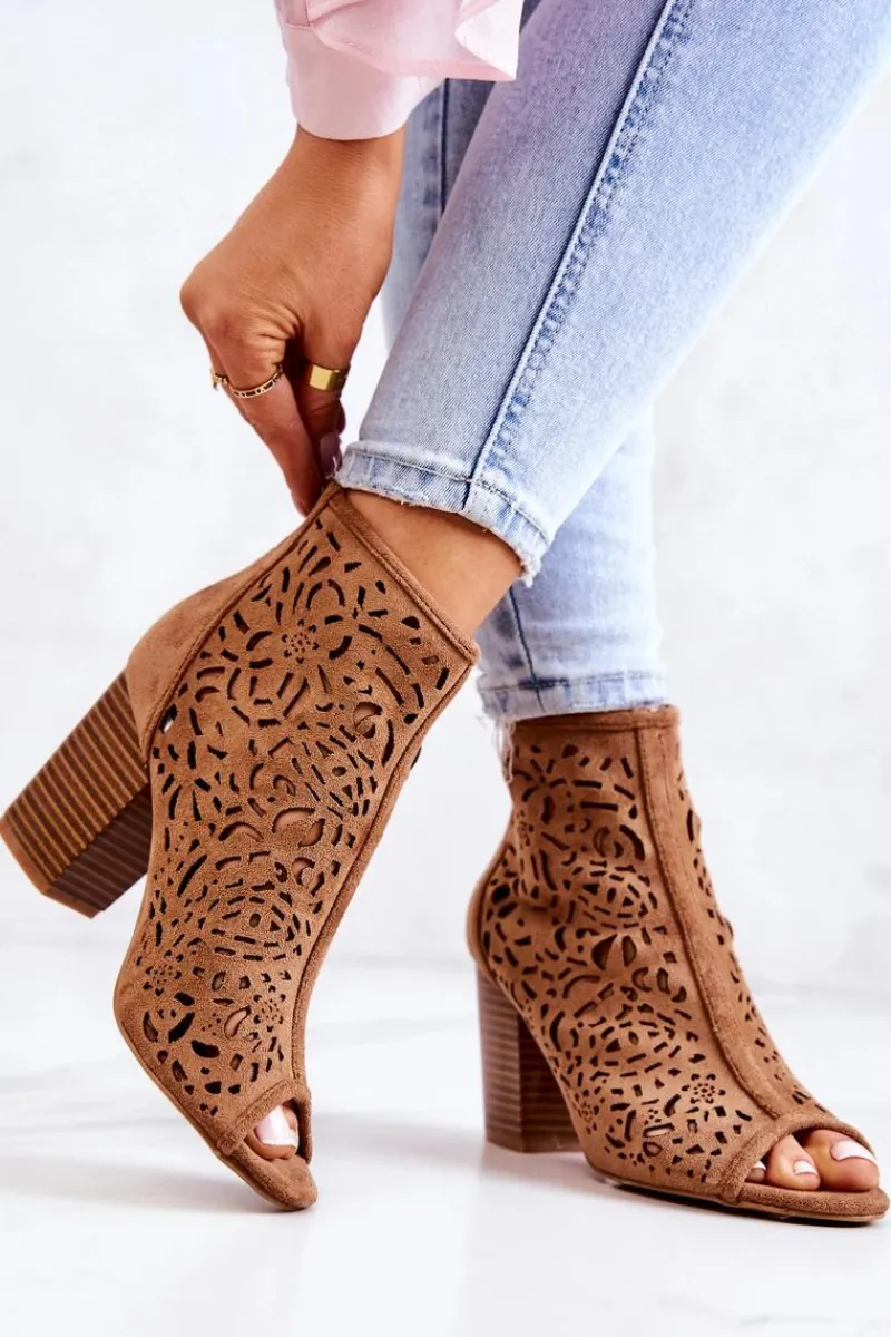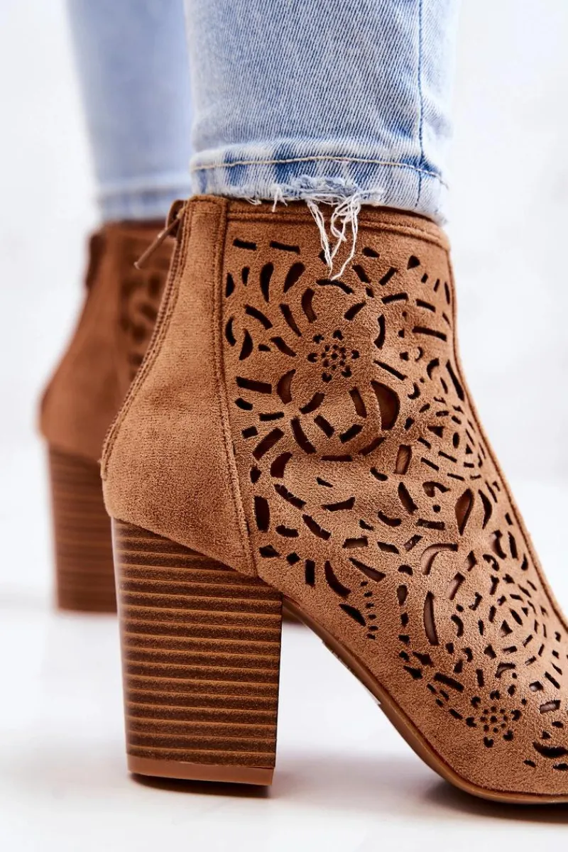 Botki to nieodłączny element kobiecych stylizacji. Wykonane z zamszowej eko skóry. Klasyczne botki z wyciętymi palcami są zapinane na suwak z tyłu cholewki. Obcas w postaci słupka optycznie wysmukli nogę. Ażurowy wzorek sprawi, że buty będą cudownie prezentować się na nodze! Koniecznie sprawdź także pozostałą naszą kolekcję botków! Przy wyborze rozmiaru prosimy sugerować się tabelą rozmiarów.