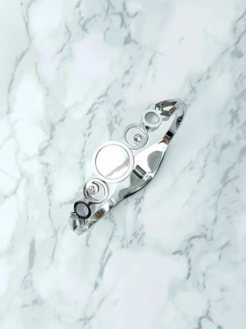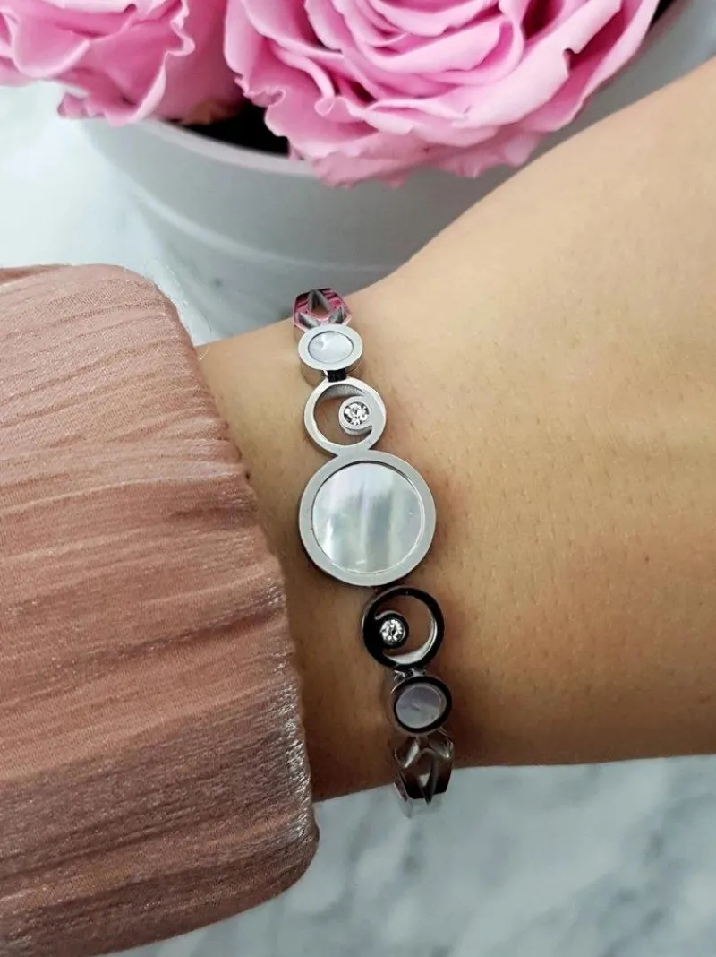 My kobiety kochamy błyskotki. Każda stylizacja potrzebuje dodatków, a nawet te najmniejsze są bardzo ważne. Mowa tu o pięknej biżuterii, która podkreśli to co najlepsze. Wspaniała bransoletka wykonana ze stali nierdzewnej z pięknym wzorem w postaci kamieni w perłowym kolorze. Bransoletka rozpina się, przez co jej zakładanie będzie jeszcze łatwiejsze. Sprawdź całą naszą kolekcję biżuterii i wybierz swój ulubiony dodatek.