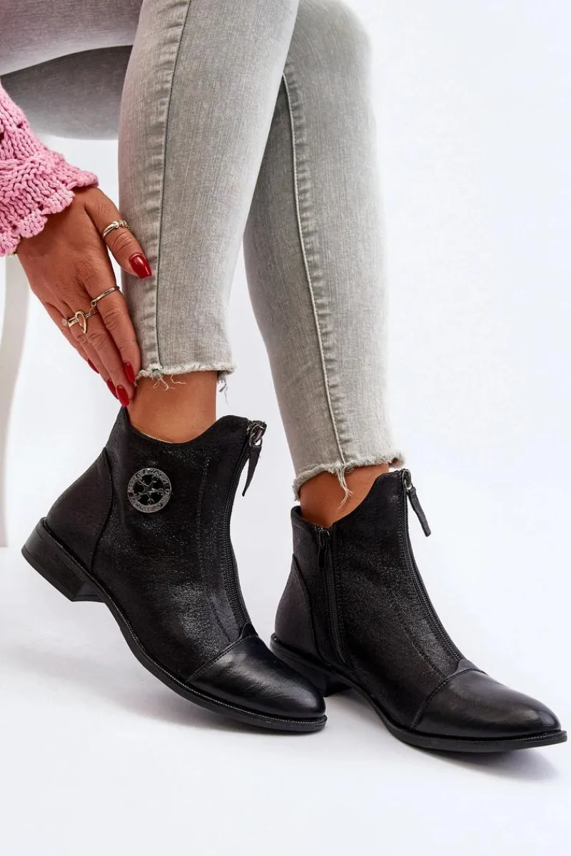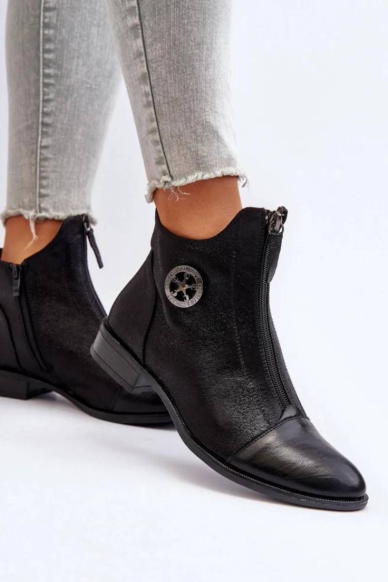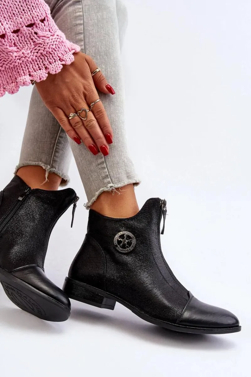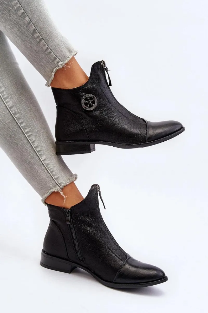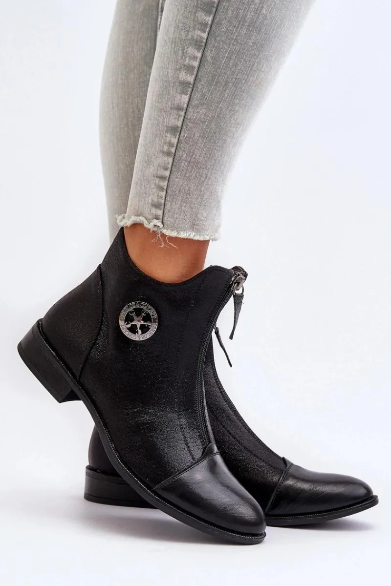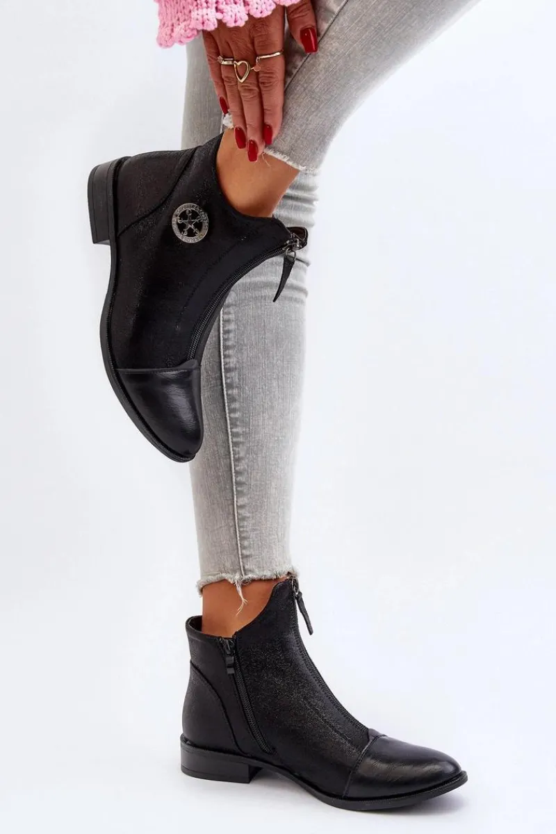 Botki marki Jezzi to idealny wybór dla tych, którzy cenią sobie zarówno styl, jak i wygodę. Wykonane z eko skóry i materiału tekstylnego, prezentują się niezwykle elegancko. Ich płaski obcas gwarantuje stabilność, a noski w kształcie migdała dodają im subtelności. Skórzana wkładka zapewnia maksymalny komfort podczas noszenia. Te botki to połączenie doskonałego designu i funkcjonalności, które sprawią, że będziesz czuć się pewnie i stylowo w każdej sytuacji. Przy wyborze rozmiaru prosimy sugerować się tabelą rozmiarów.