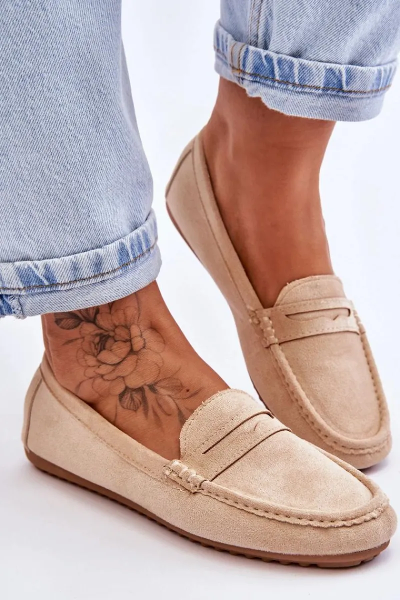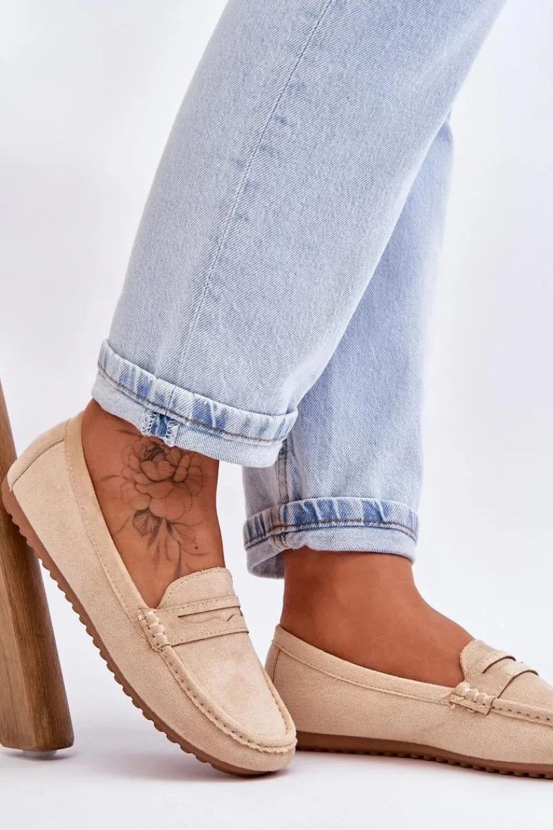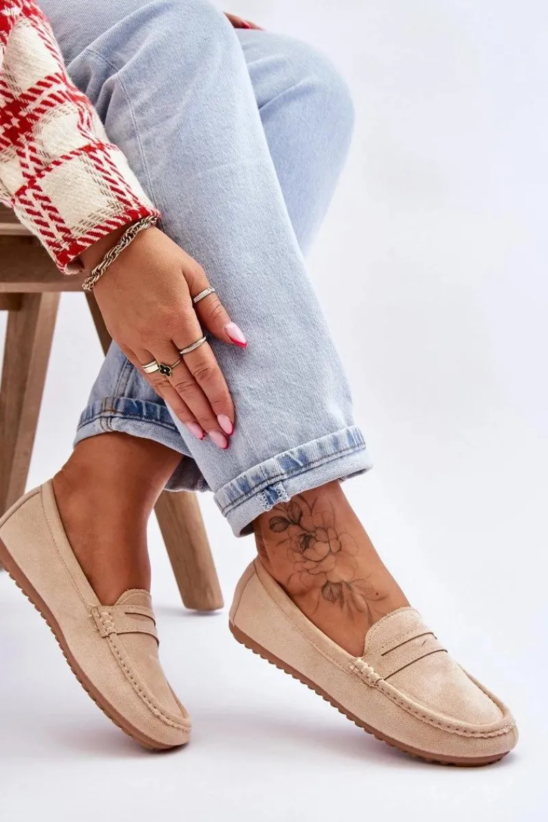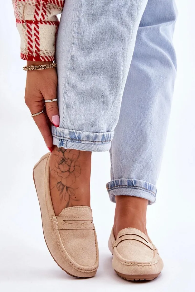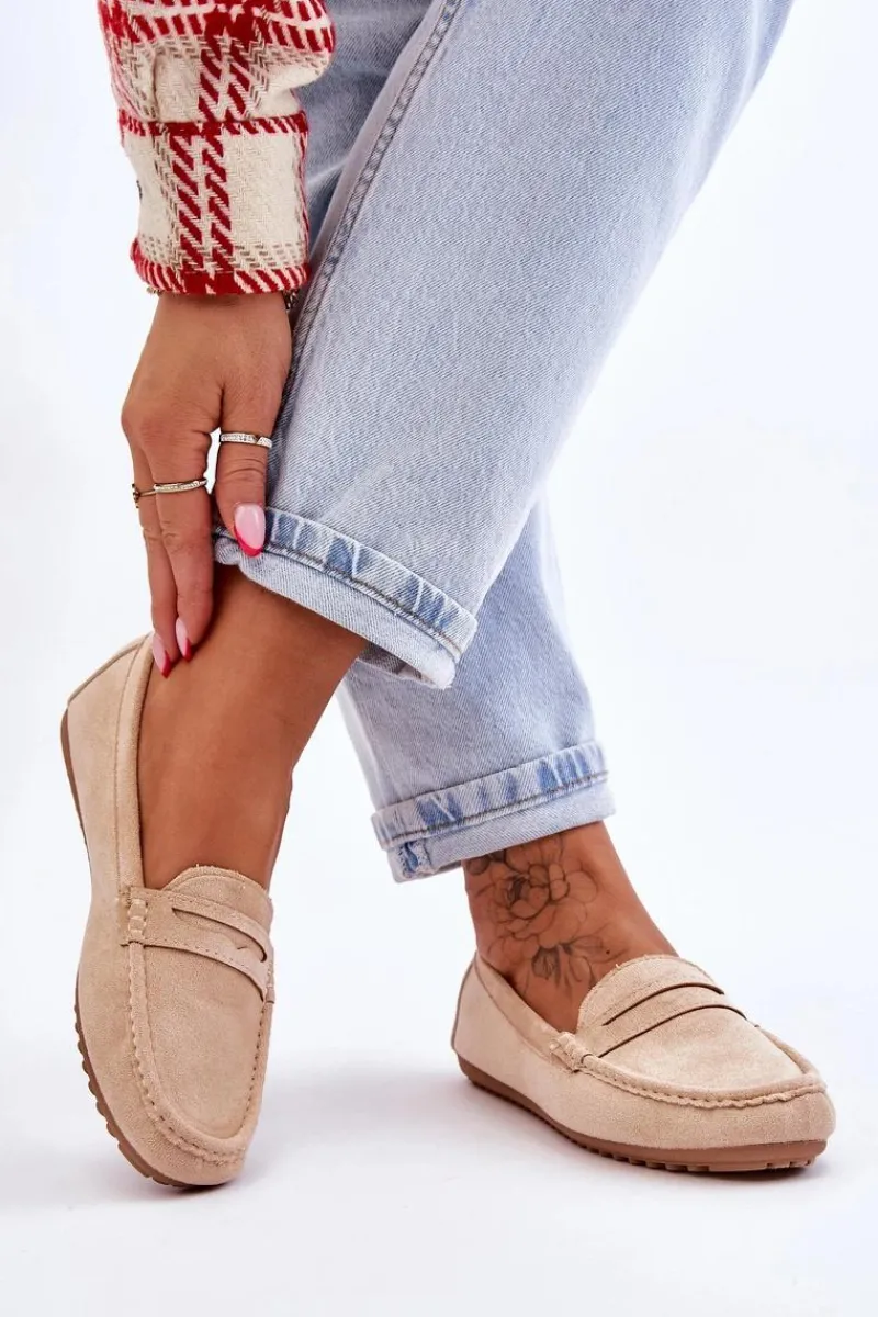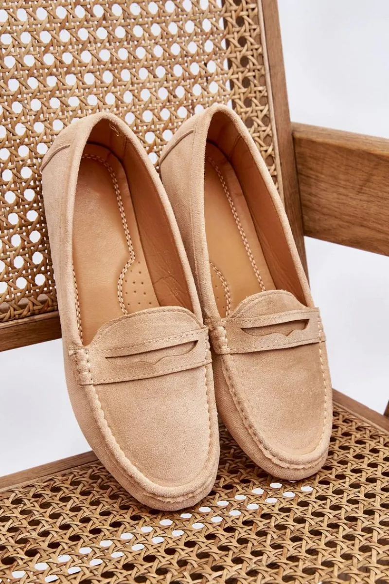 Outlet Boto Damskie Klasyczne Zamszowe Mokasyny Beżowe Ivana