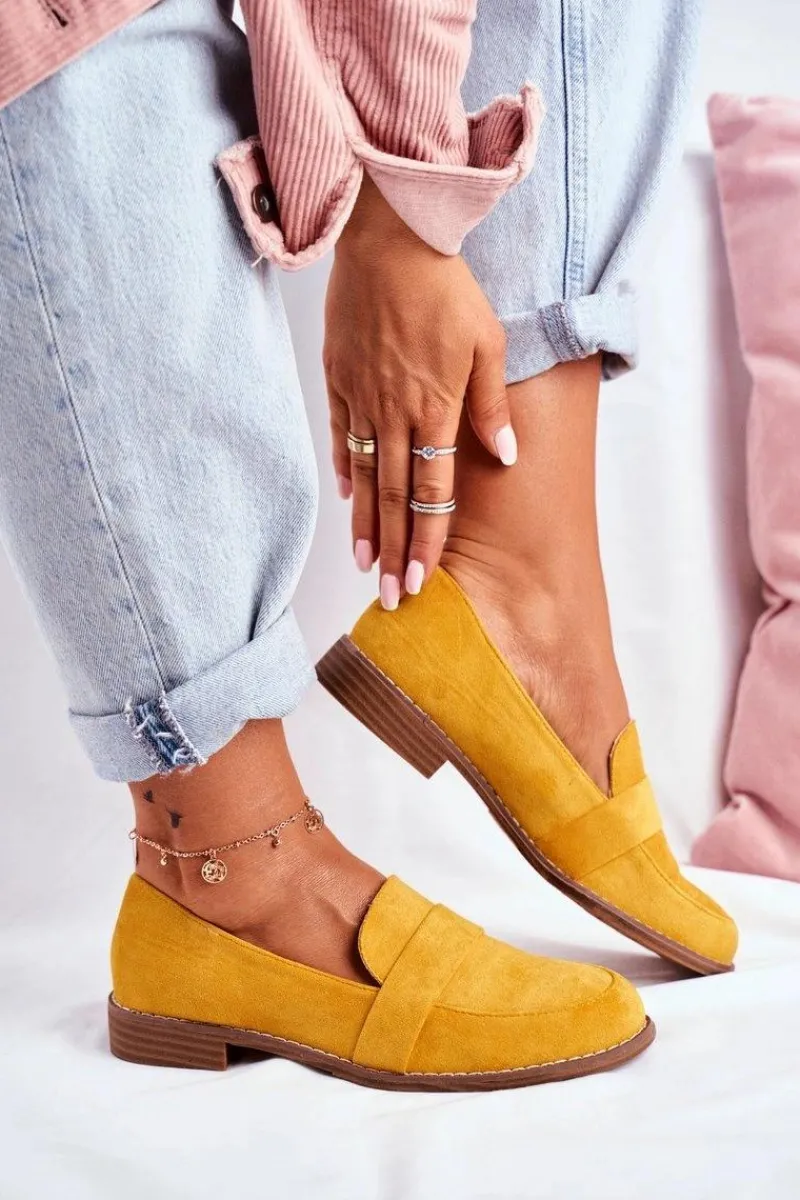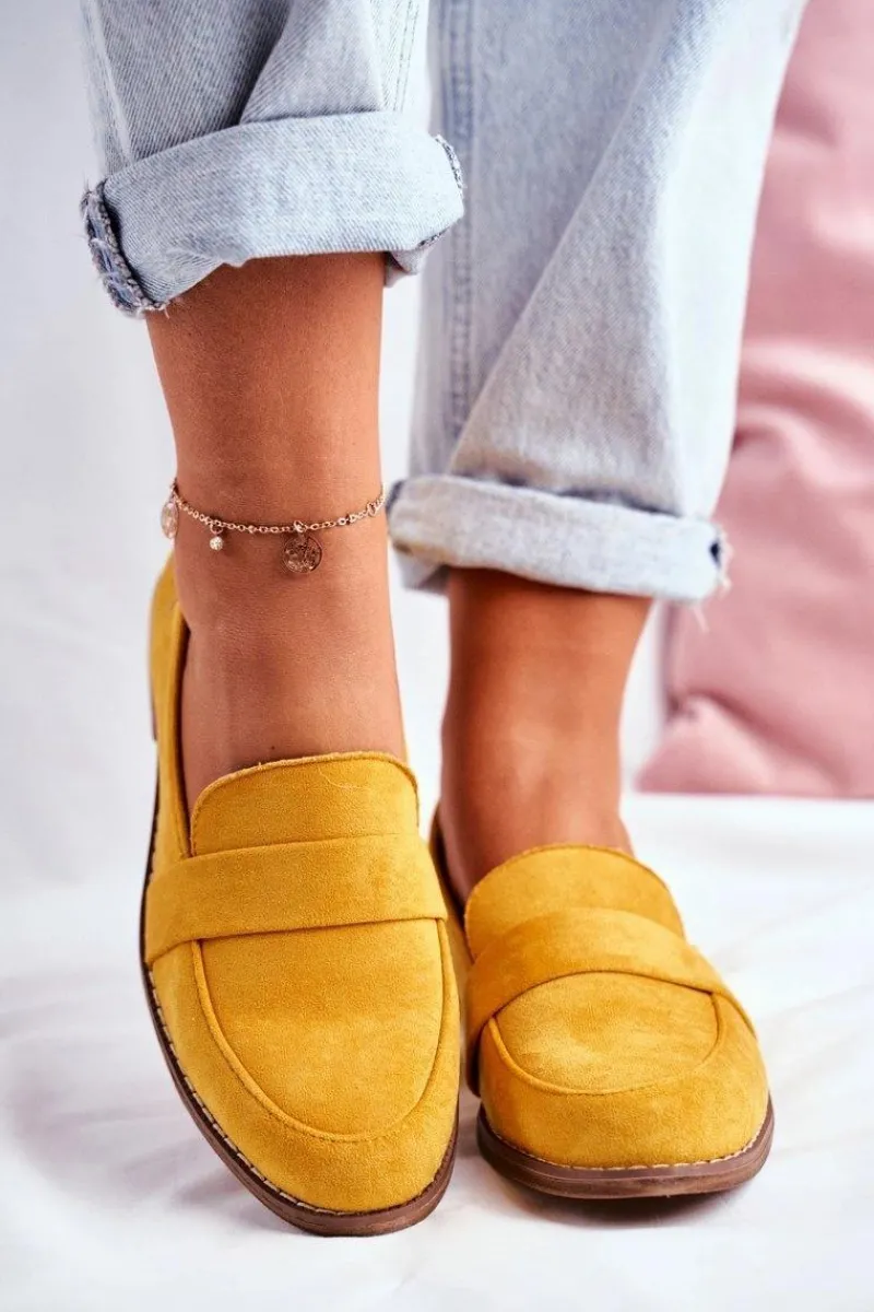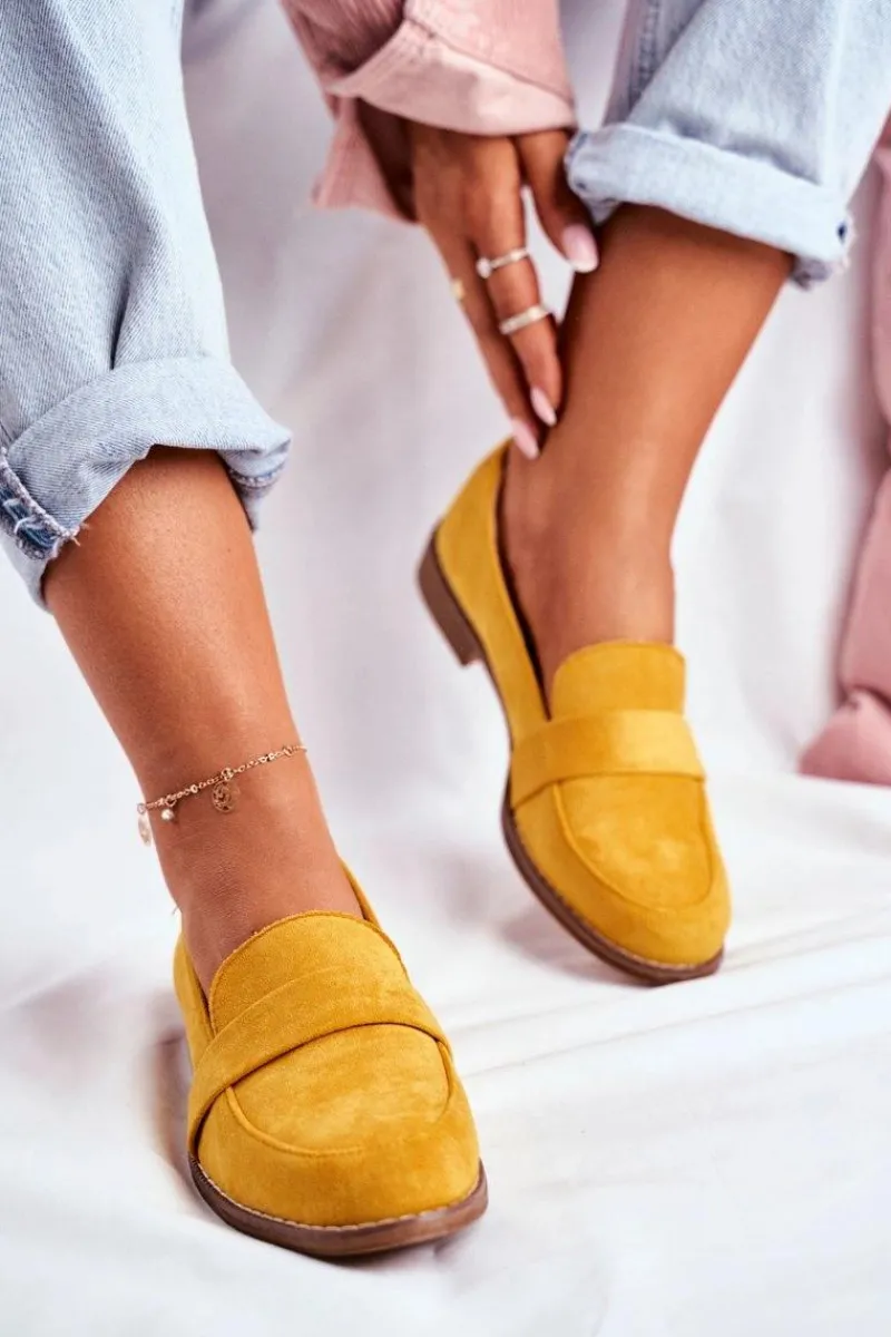 Outlet Boto Damskie Półbuty Zamszowe Żółte Cintra