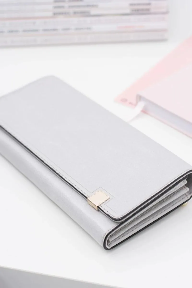 Przedstawiamy piękne portfele dla eleganckich Pań, dostępny w kilku cudownych kolorach. Produkty te charakteryzuje wyjątkowy szyk. Wykonywane są przy użyciu tylko najwyższej klasy materiałów. Staranne i piękne wykończenie każdego portfela oddaje niesamowitą dbałość o detale oraz modowy gust. Portfel posiada zapinanie na zatrzask. Wewnątrz znajdują się dwie kieszonki zapinane na zamek, 4 większe przegródki na różne drobiazgi, dokumenty, 6 przegródek na karty oraz miejsce na zdjęcie. Na tylnej części portfela znajduje się dodatkowa kieszeń zapinana na piękny złoty zamek.