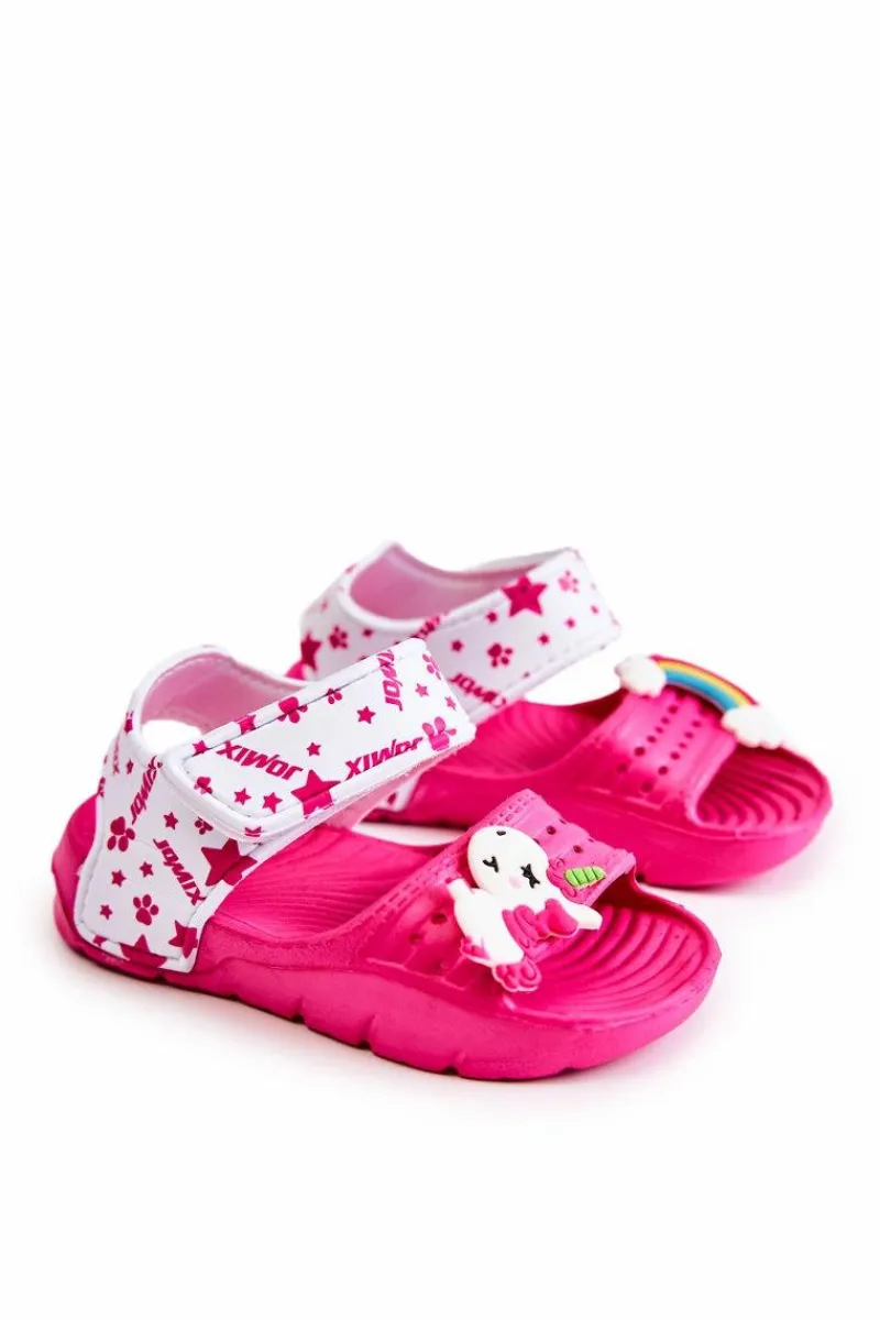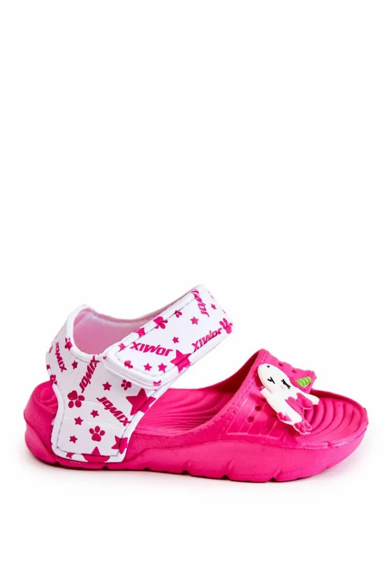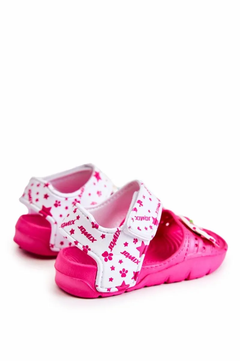 Niezwykle lekkie sandały dziecięce z odkrytym, okrągłym noskiem oraz odkrytą piętą. Wykonane z piankowego tworzywa, co daje gwarancje komfortu podczas długich spacerów. Zapinane na pasek z rzepem przy kostce. Kolorowe ozdoby na przodzie zostały wykonane z gumowego tworzywa. Koniecznie sprawdź całą naszą kolekcję dziecięcych sandałek! Przy wyborze rozmiaru prosimy sugerować się tabelą rozmiarów.
