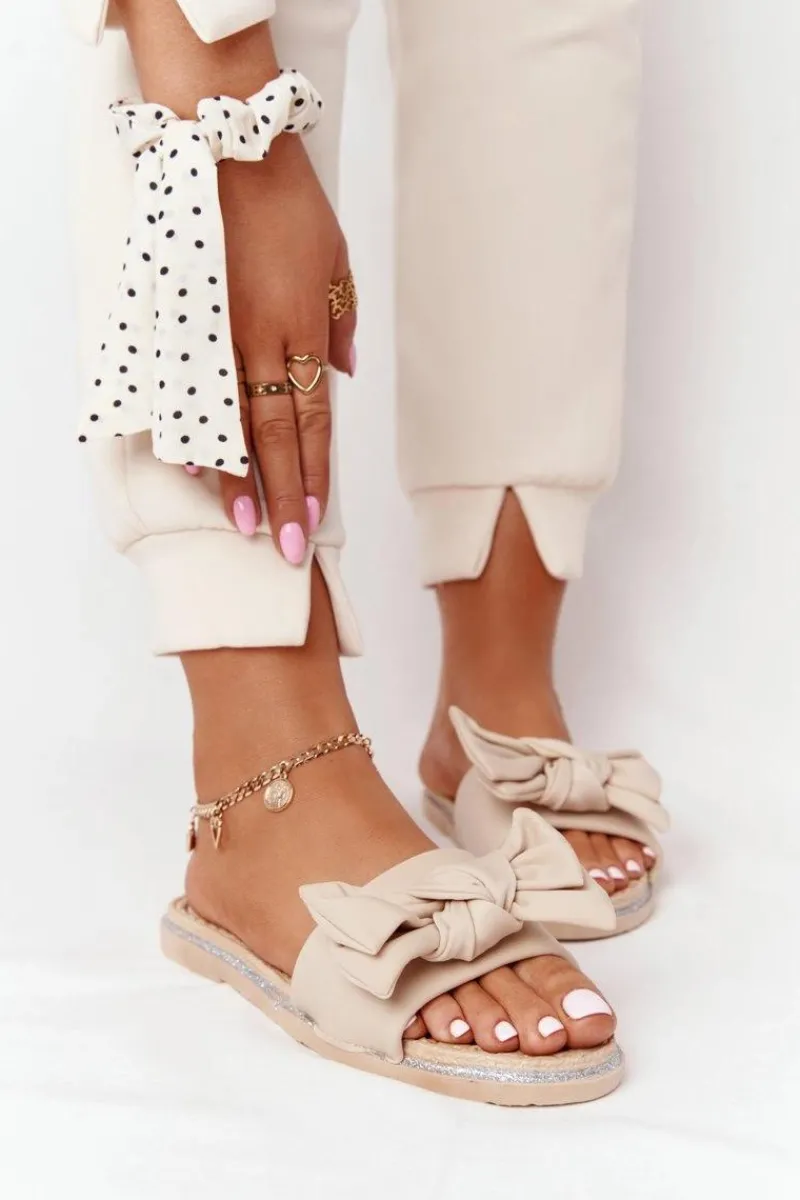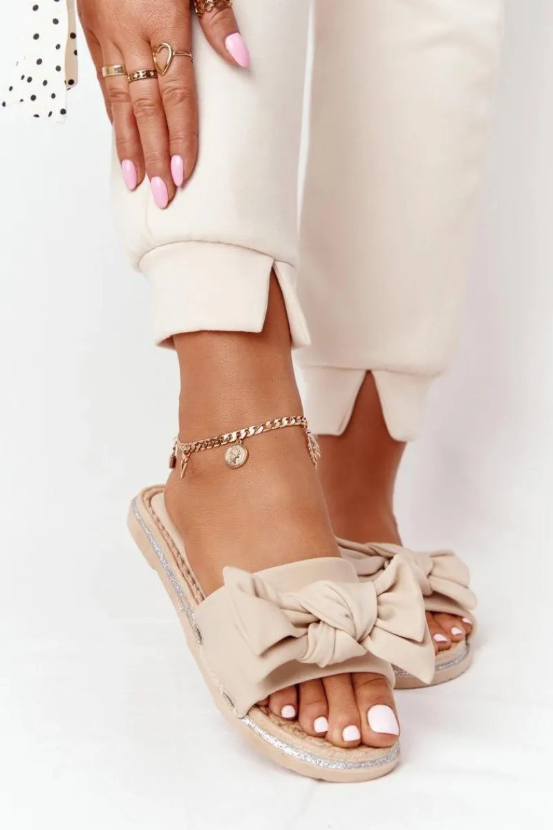 Gumowe klapki damskie z kokardą. Klapki to świetna propozycja dla kobiet ceniących sobie komfort w letnie dni! Buty posiadają miękką materiałową wkładkę oraz gumową podeszwę. Przy wyborze rozmiaru prosimy sugerować się tabelą rozmiarów.