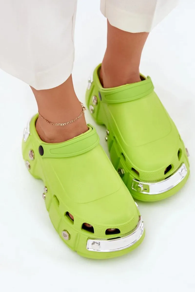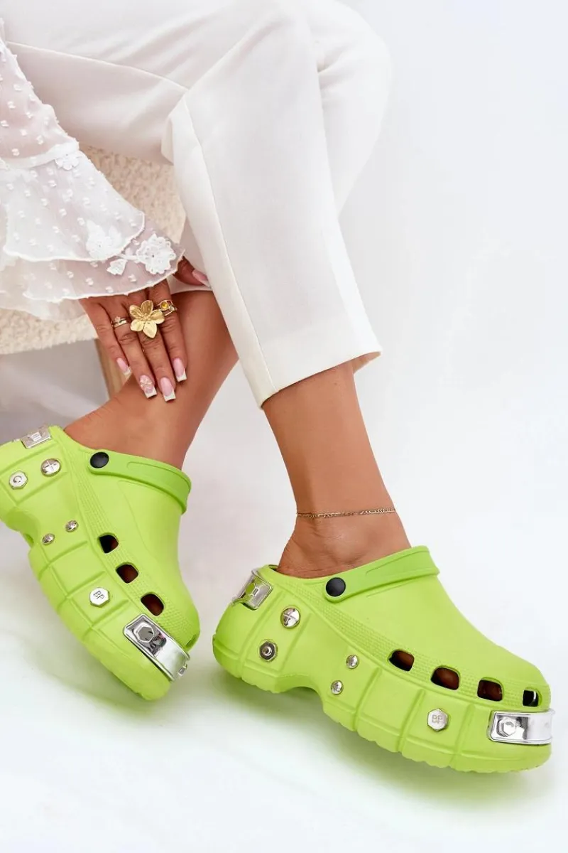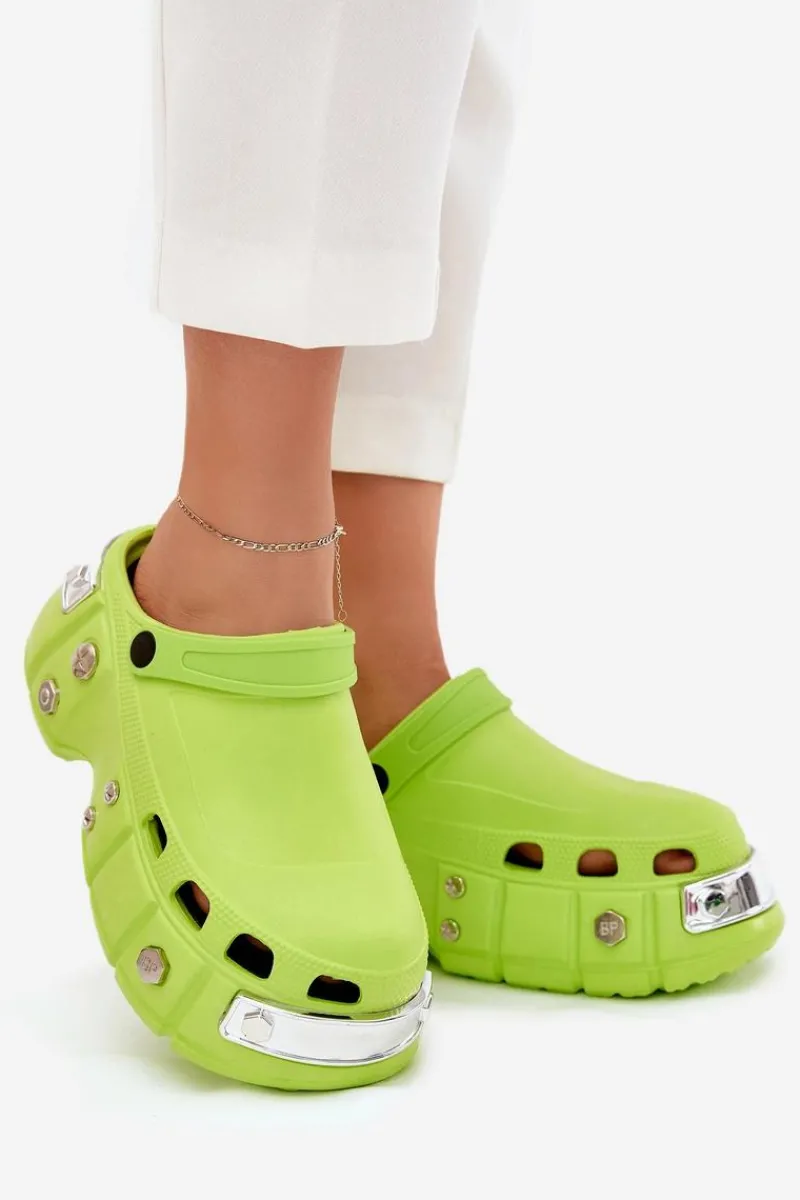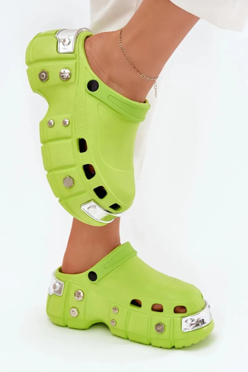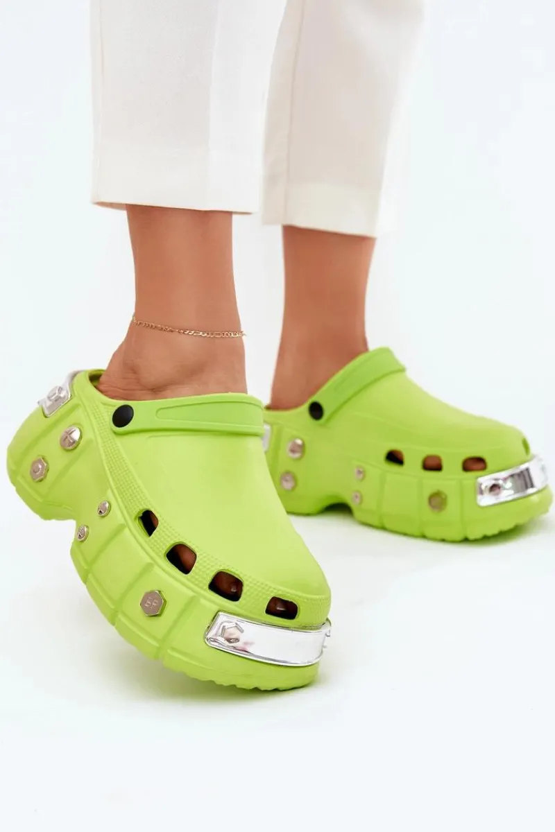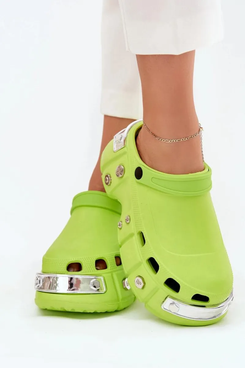 Klapki damskie wykonane z lekkiego, piankowego tworzywa to idealny wybór na lato. Wyróżniają się masywną platformą, która dodaje charakteru i nowoczesnego wyglądu. Dodatkowe zdobienie nadaje im modowego akcentu, sprawiając, że stanowią ciekawy element codziennych, wakacyjnych stylizacji. Świetne na plażę, basen czy miejskie spacery. Przy wyborze rozmiaru prosimy sugerować się tabelą rozmiarów.