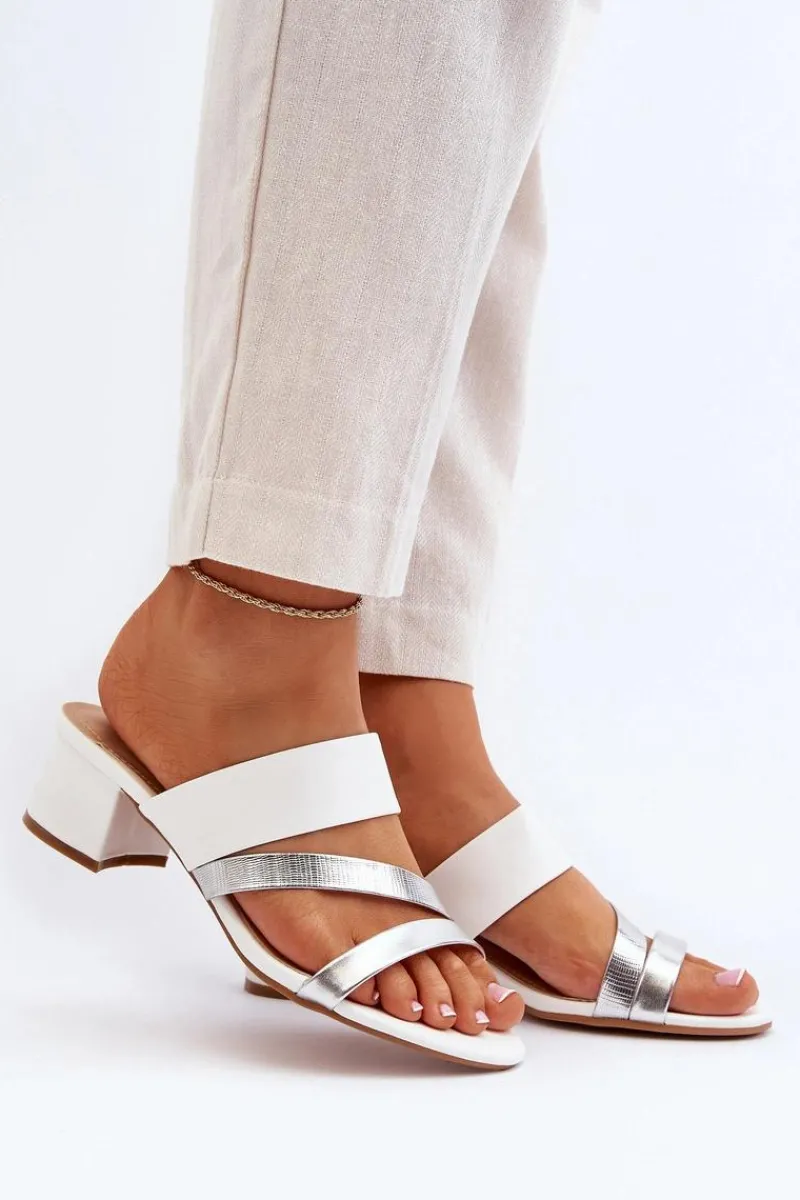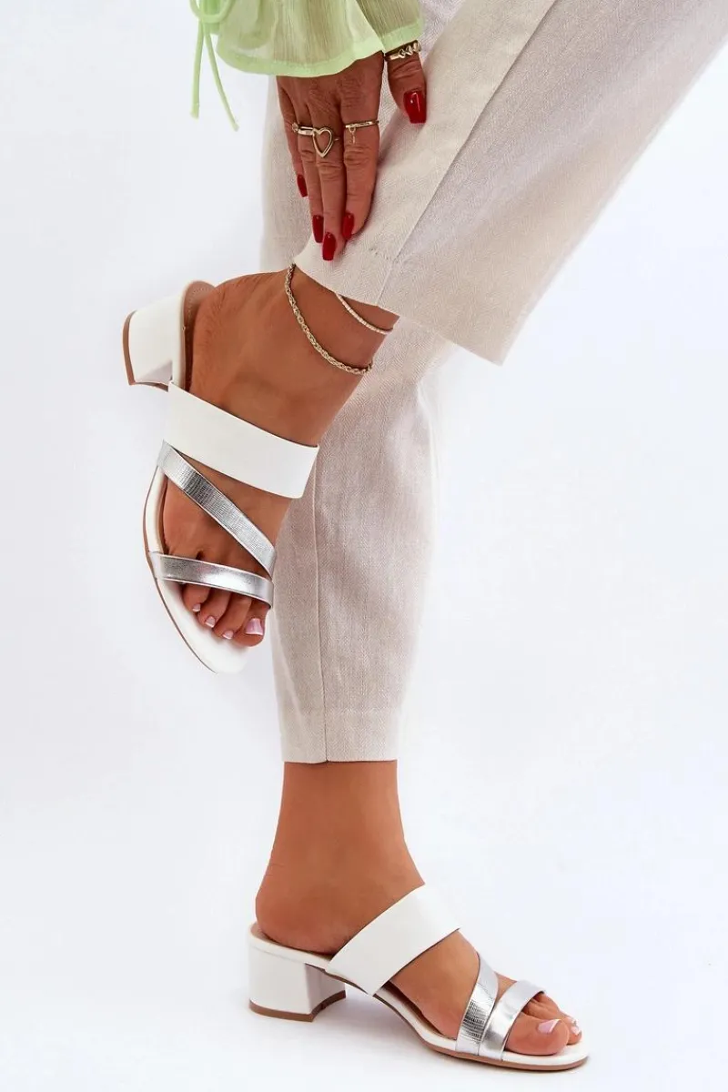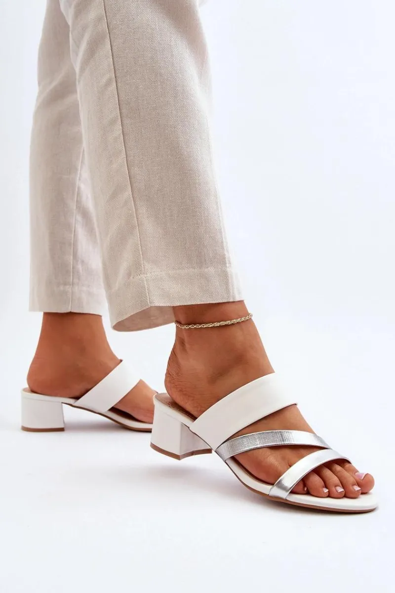 Outlet Boto Klapki Damskie Na Niskim Obcasie Białe Rosila