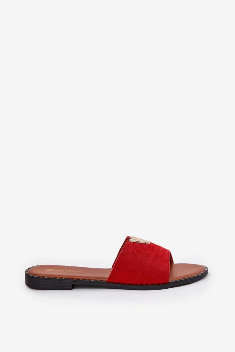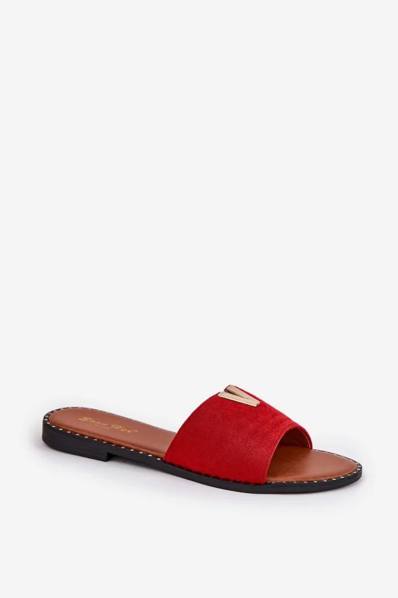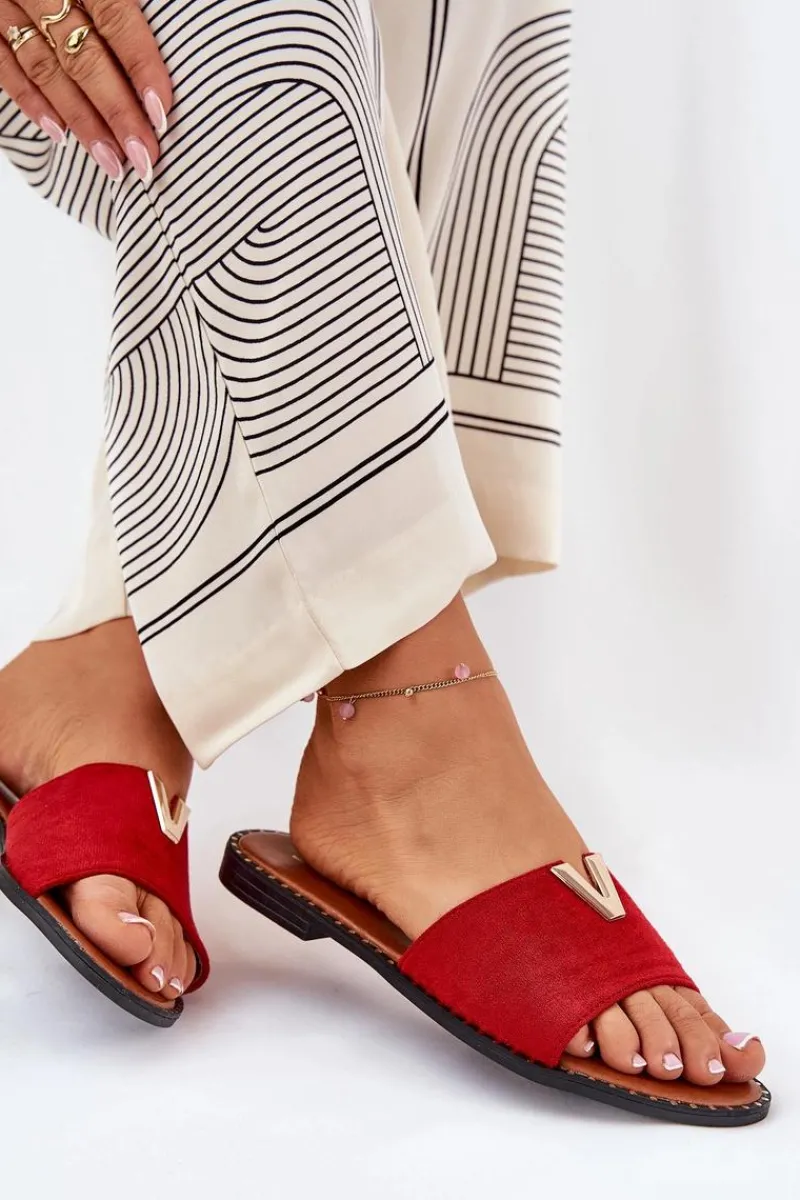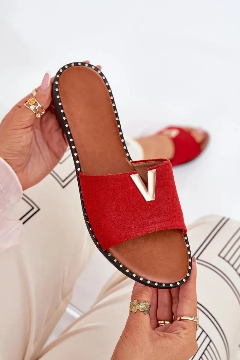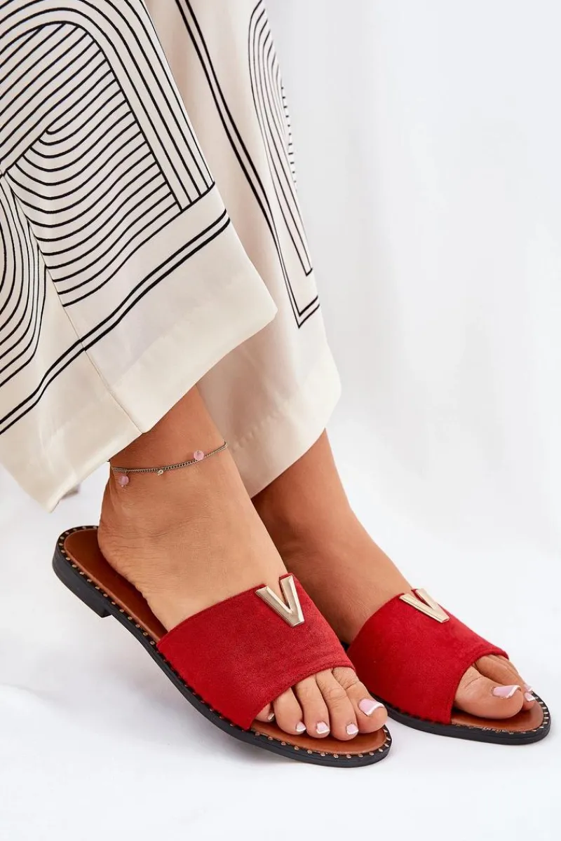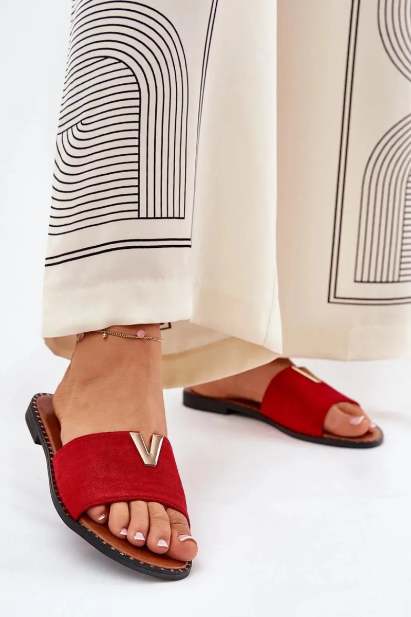 Klapki damskie na płaskim obcasie to idealny wybór na letnie dni. Wykonane z przyjemnego w dotyku eko zamszu, zapewniają komfort noszenia. Klasyczny fason wzbogacony został o ozdobne detale, które nadają im eleganckiego charakteru. Doskonałe zarówno na co dzień, jak i na letnie spacery. Świetnie komponują się z sukienkami, spódnicami oraz spodniami, dodając stylowego akcentu każdej stylizacji. Przy wyborze rozmiaru prosimy sugerować się tabelą rozmiarów.