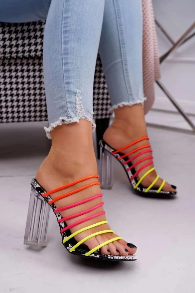 Outlet Boto Klapki Damskie Na Słupku Wsuwane Multikolor Dubai