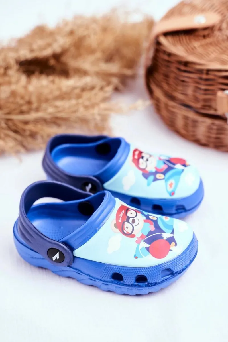 Outlet Boto Klapki Dziecięce Piankowe Kroksy Niebieskie Miś Pilot SuperFly