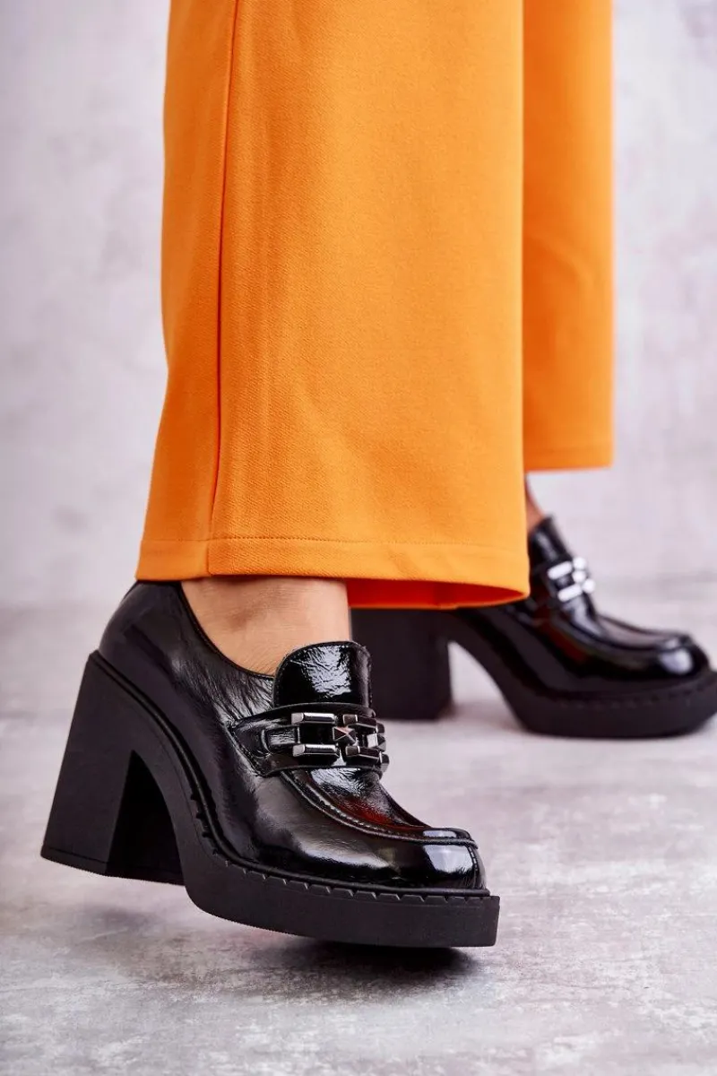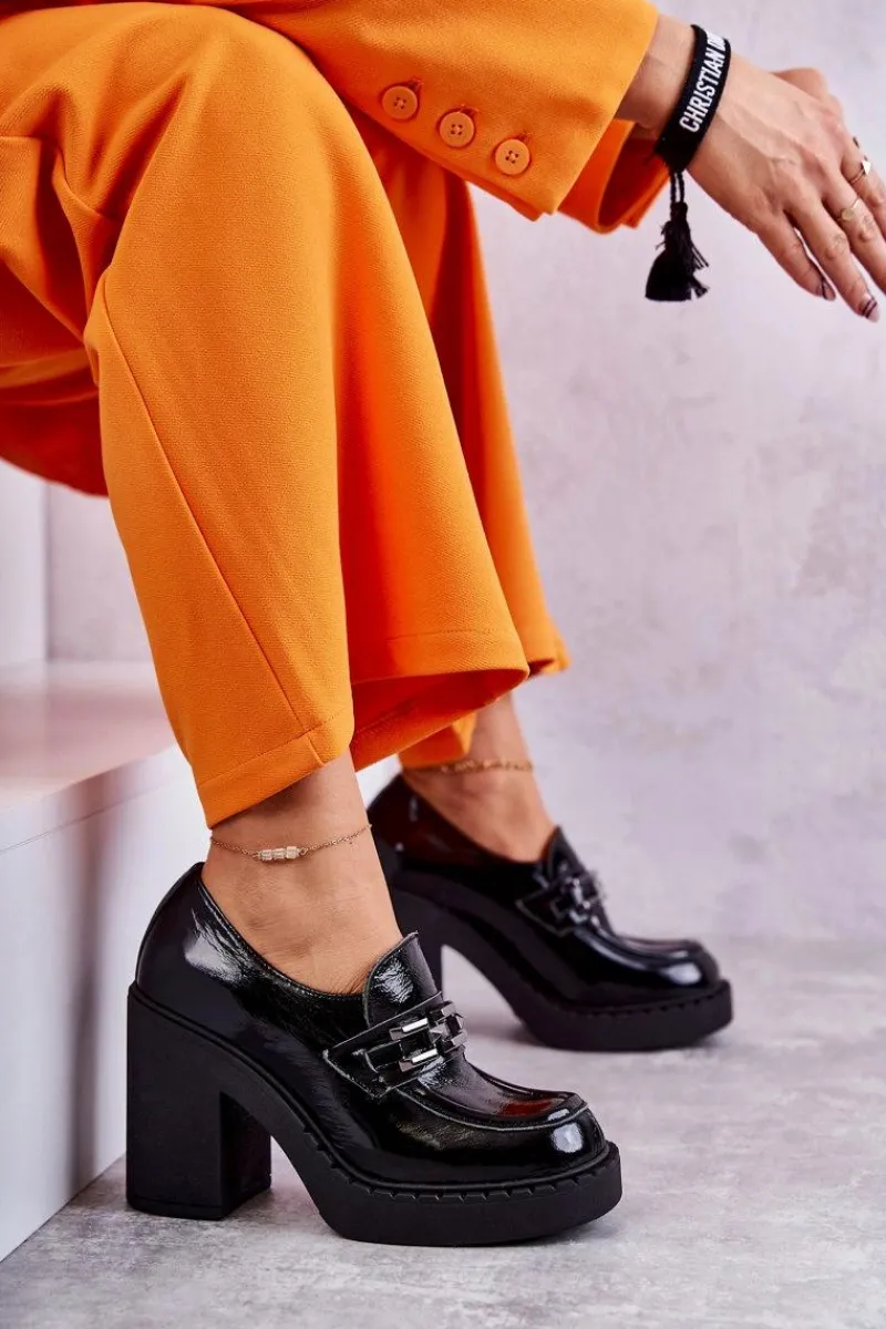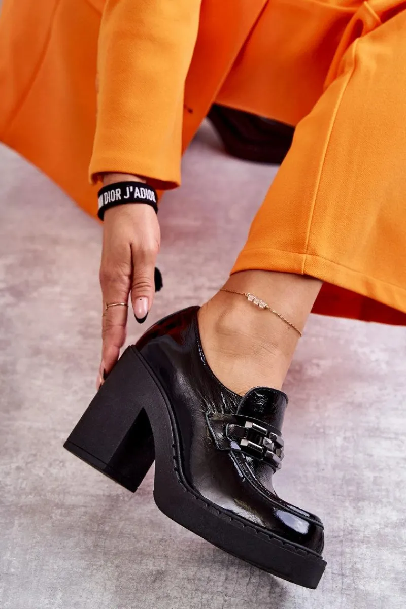 Cudowne półbuty na obcasie w postaci masywnego słupka z platformą. Cholewka oraz wkładka wykonane ze skóry naturalnej. Podeszwa wykonana z gumowego tworzywa jest antypoślizgowa. Ozdoba na przodzie dodaje tym butom elegancji. Model ten posiada usztywniany zapiętek, który dodatkowo stabilizuje stopę. Pod językiem znajduje się gumka, która sprawi, że but będzie idealnie dopasowany do stopy. Przy wyborze rozmiaru prosimy sugerować się tabelą rozmiarów.