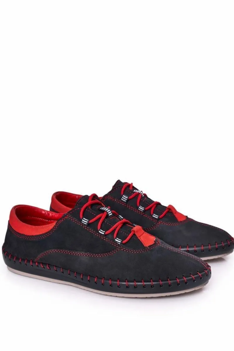 Outlet Boto Męskie Skórzane Półbuty BEDNAREK Granatowe