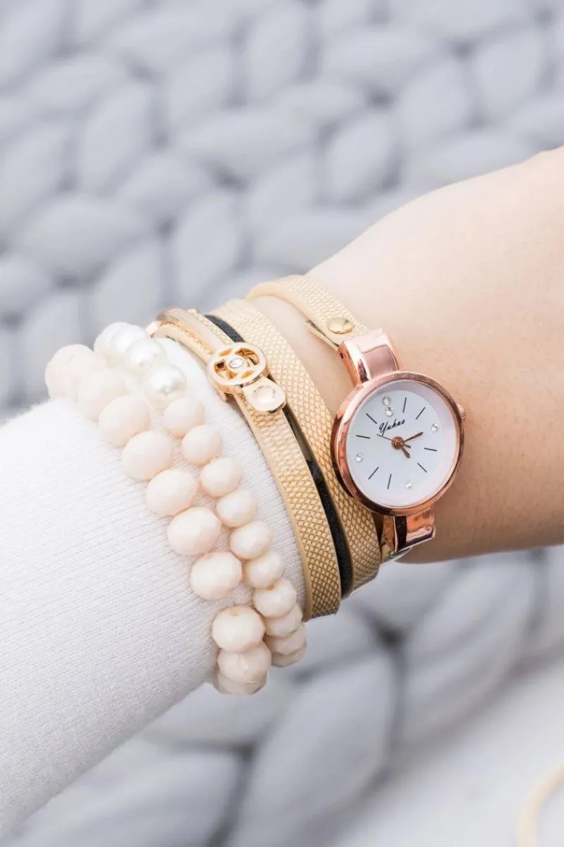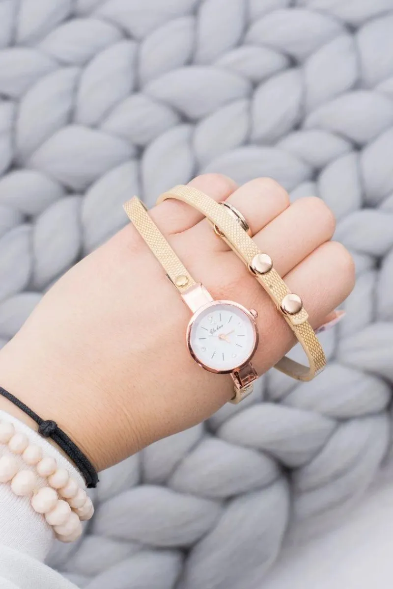 Designerski damski zegarek! Złoty, podwójny pasek wraz z gustowną i elegancką kopertą to coś czego potrzebujesz, będzie pasował do wielu stylizacji! Kup teraz w świetnej cenie!