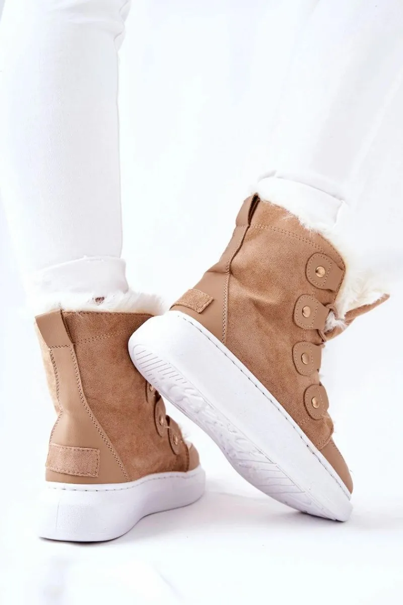 Piękne botki wykonane z zamszowej eko skóry. Posiadają bardzo ciepłe wypełnienie w postaci miłego w dotyku futerka. Buty posiadają platformę oraz wiązanie, dzięki któremu można dopasować je do własnych potrzeb. Idealnie sprawdzą się w zimowe dni! Nie czekaj dłużej i kup zanim znikną ! Przy wyborze rozmiaru prosimy sugerować się tabelą rozmiarów.