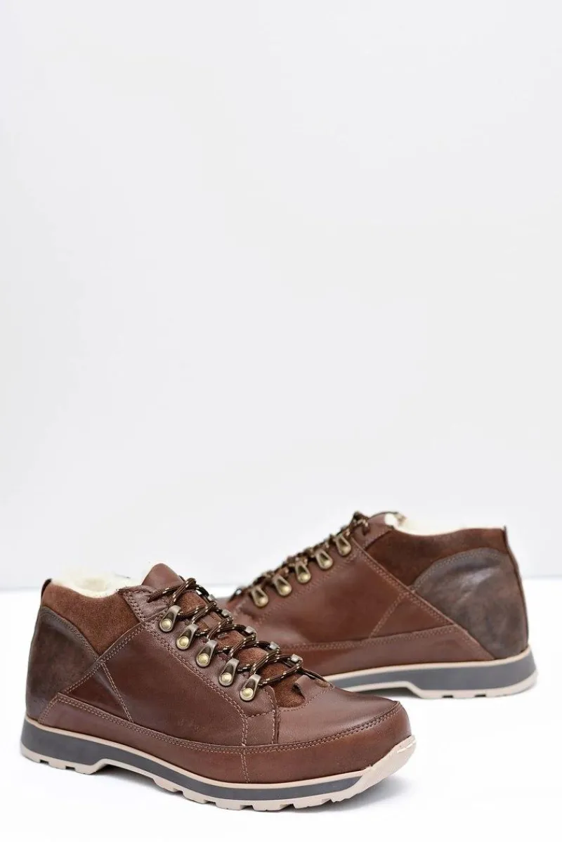 Outlet Boto Półbuty Męskie Brązowe Ocieplane Trafer