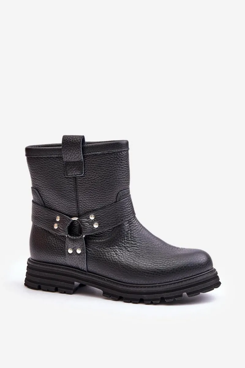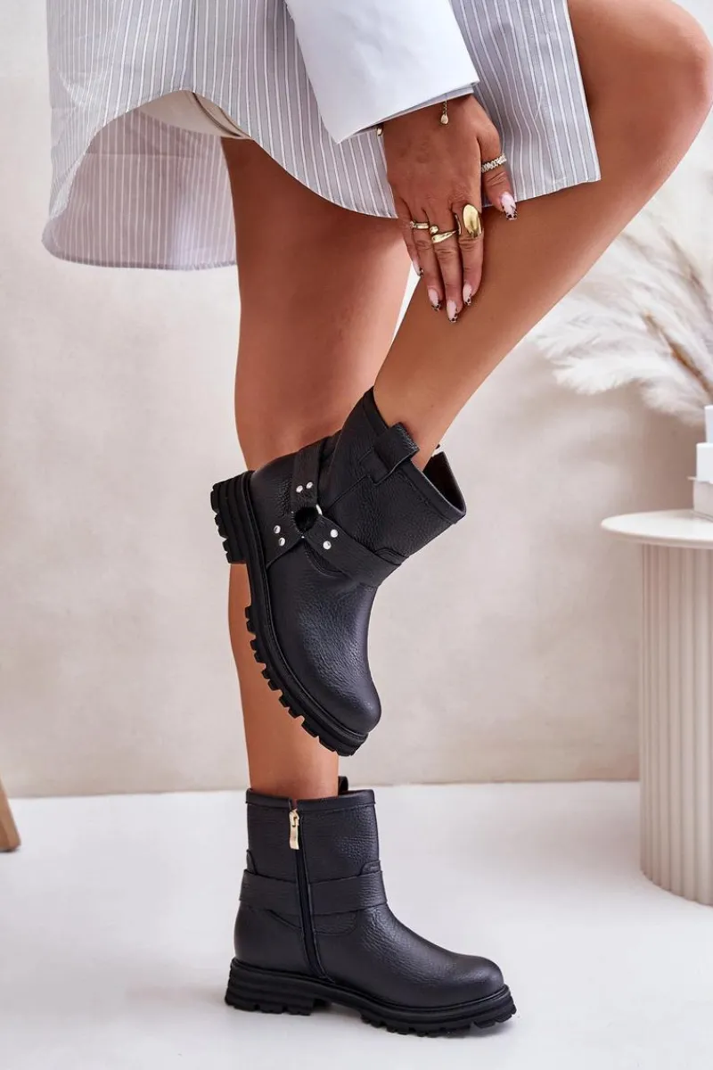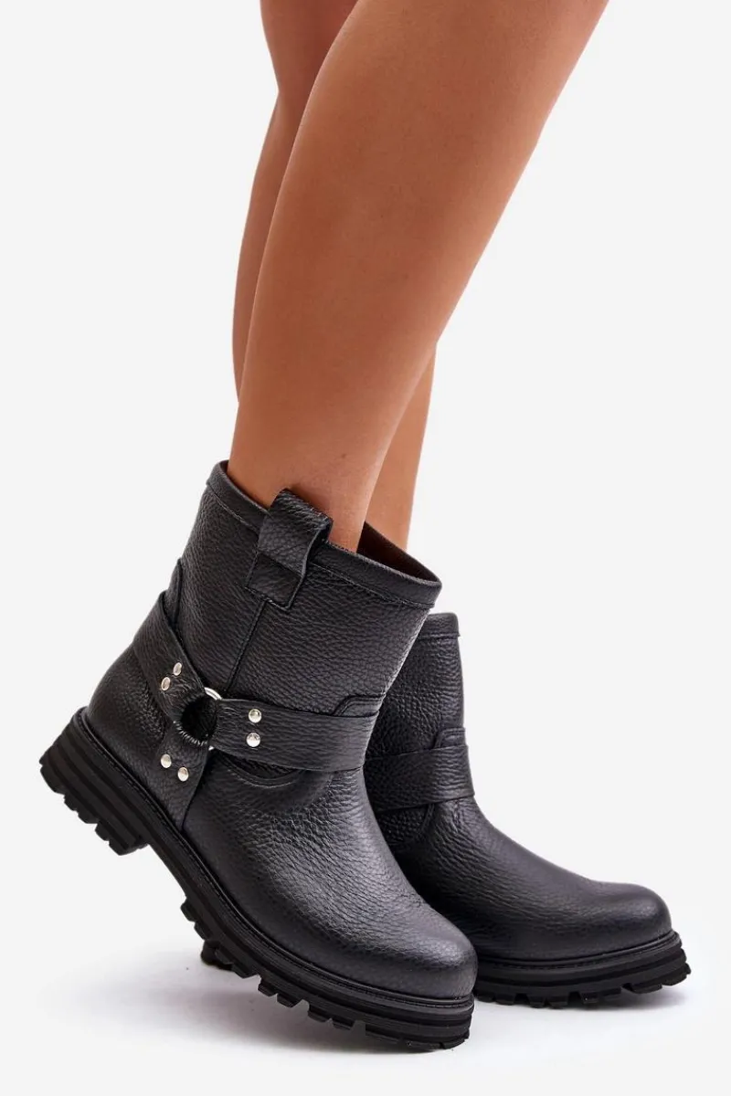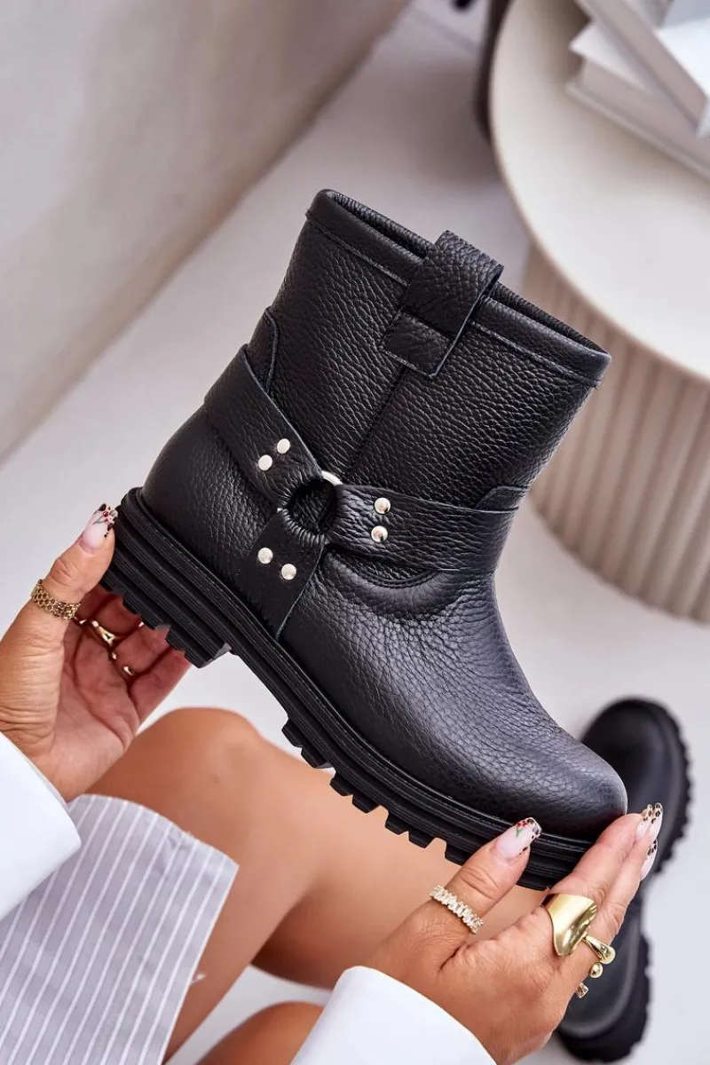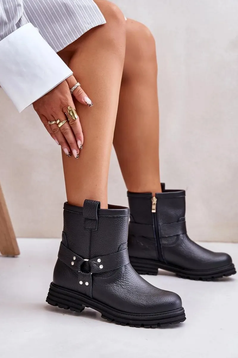 Botki wykonane z naturalnej skóry to idealny wybór na każdą okazję. Osadzone na płaskim obcasie, zapewniają komfort i stabilność podczas chodzenia. Zaokrąglone noski dodają subtelnego charakteru. Model zapinany na zamek, co ułatwia zakładanie. Cholewka ozdobiona efektownym połączeniem pasków, które dodają stylowego akcentu. Te botki świetnie sprawdzą się w codziennych stylizacjach, łącząc elegancję z wygodą. Przy wyborze rozmiaru prosimy sugerować się tabelą rozmiarów.