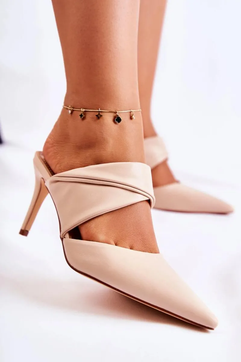 Outlet Boto Skórzane Klapki Na Szpilce Beżowe Aveline