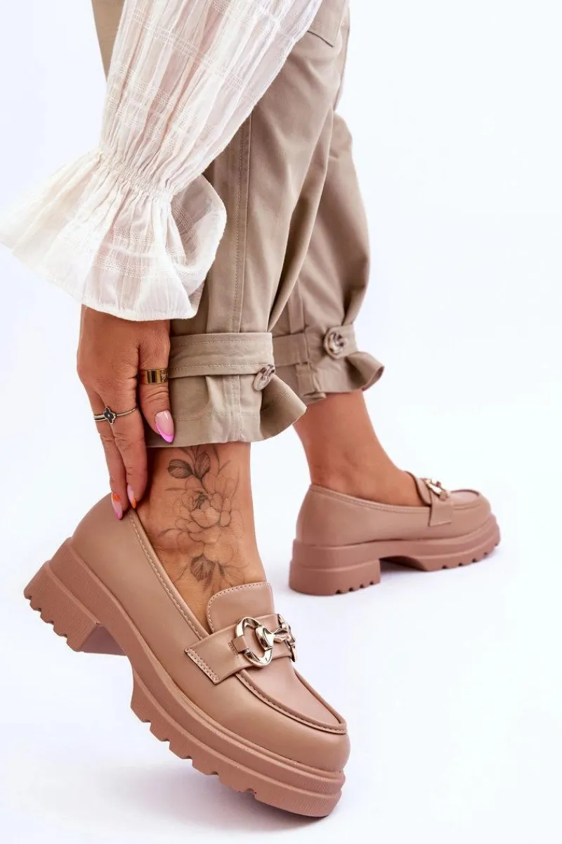 Klasyczne, damskie mokasyny, które świetnie sprawdzą się w wielu stylizacjach! Zostały osadzone na płaskim obcasie i platformie. Posiadają z przodu ozdobę z tworzywa sztucznego. Model ten został wykonany z eko skóry. Zapiętek w tych butach jest delikatnie usztywniany. Z pewnością wykorzystasz je w sezonie wiosenno-jesiennym! Przy wyborze rozmiaru prosimy sugerować się tabelą rozmiarów.
