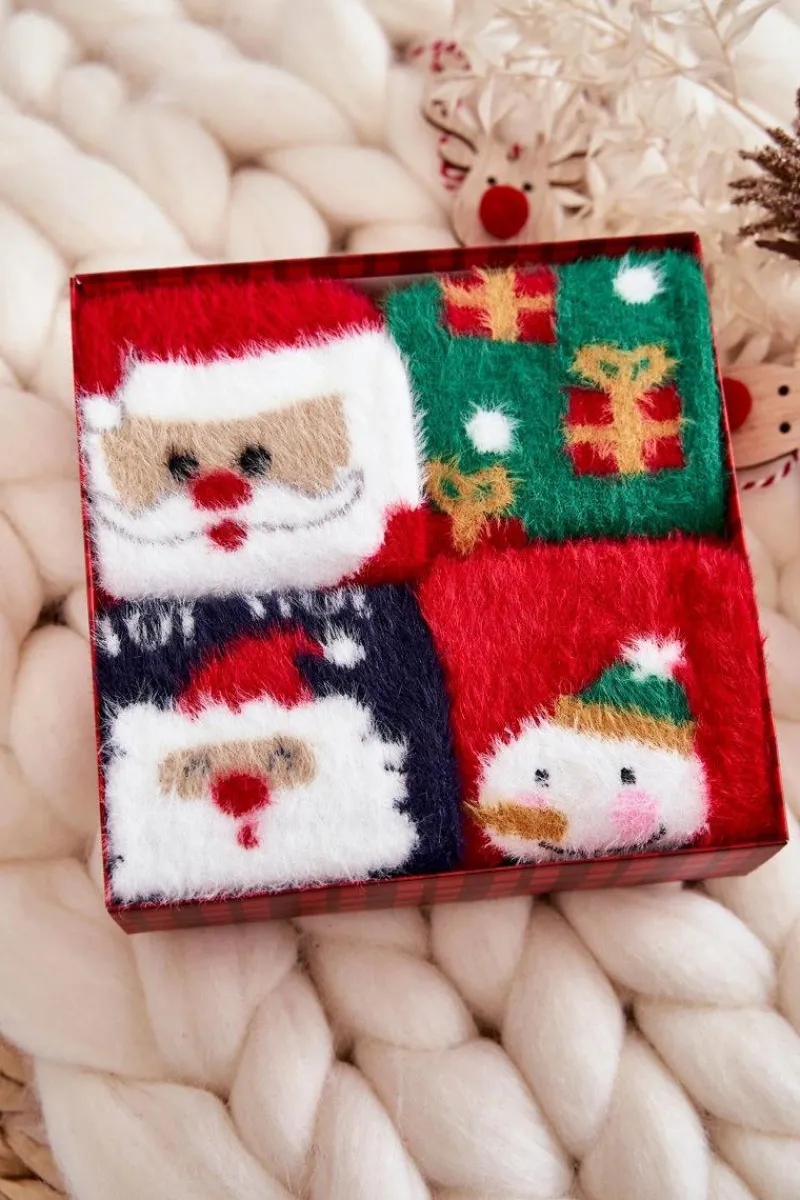 Cudowny zestaw czterech par damskich skarpet w świąteczne wzory. Zapakowane w piękne pudełko z ozdobną wstążką. Idealny prezent na święta! Wykonane głównie ze sztucznego futra norek, które jest bardzo miękkie i przyjemne w dotyku. Skarpetki w takie wzory sprawią, że magia świąt zostanie z Tobą na dłużej!